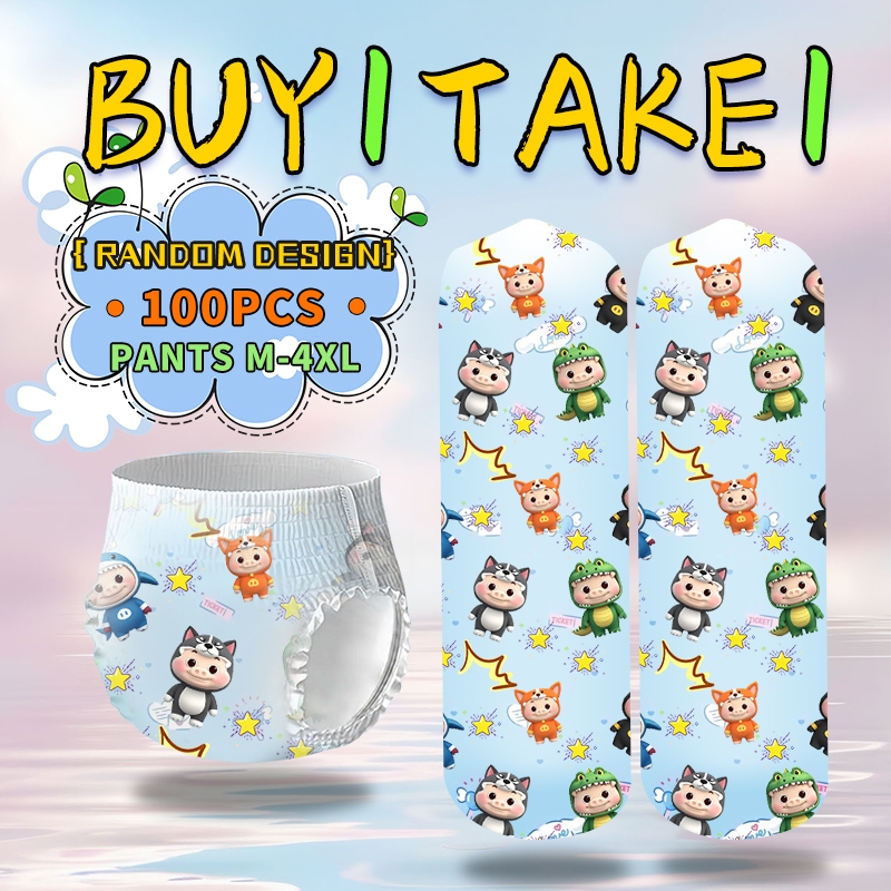 Buy 1 Take 1 100PCS Korean Baby Diaper for M-3XL Size Ultra-Thick Soft and Breathable dry Unisex