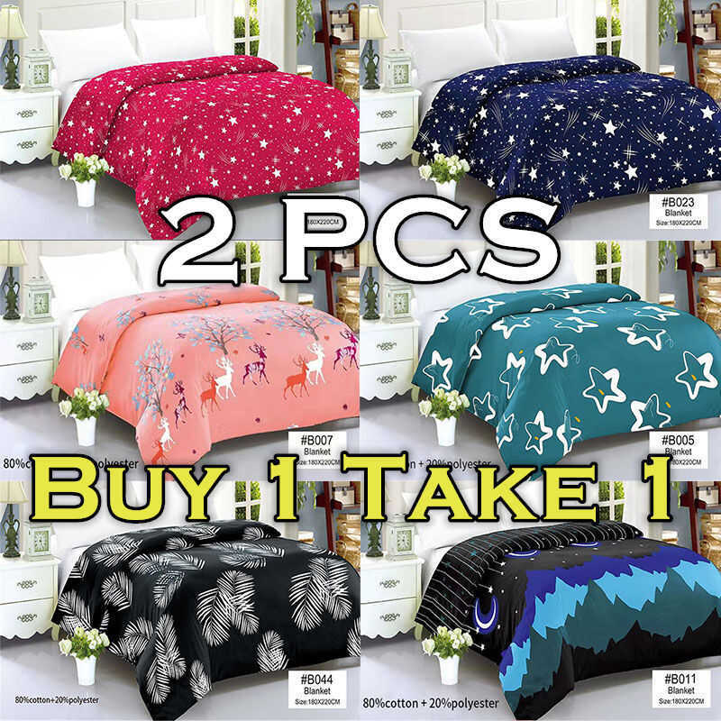 Buy 1 Take 1=2Pcs 180X220cm Comfortable Cotton Bed Blanket Kumot Makapal Christmas Cover Double