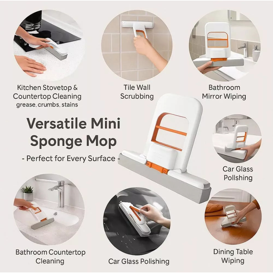 Buy 1 take 1 Mini Mop Portable Desktop Cleaning Tool Compact Handheld Sink Mop with Squeeze Function