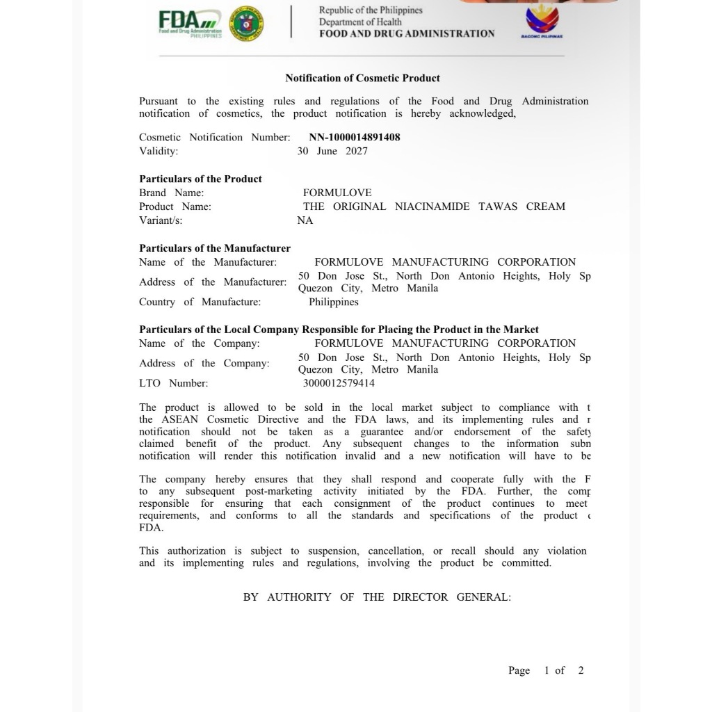 Buy 1 take 1 The Original Niacinamide Tawas Cream anti body odor whitening fda approved
