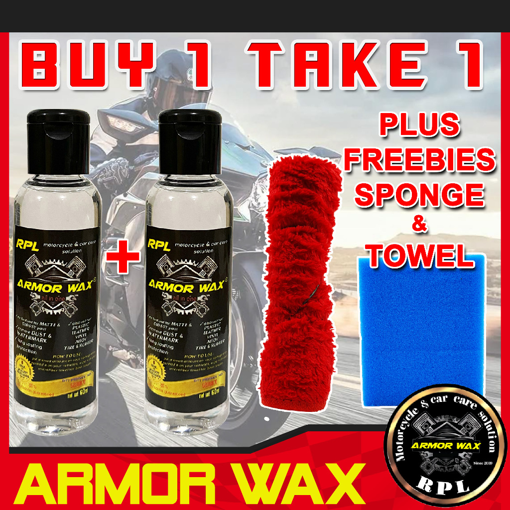Buy 1 take 1 armor wax coat for matte and glossy free sponge and microfiber towel 60ml