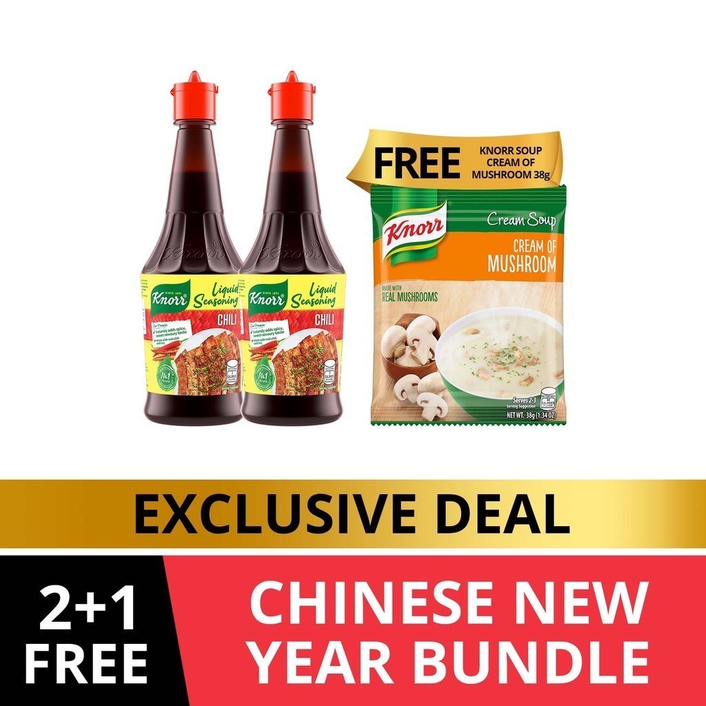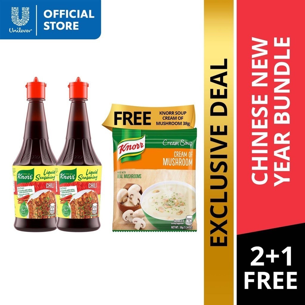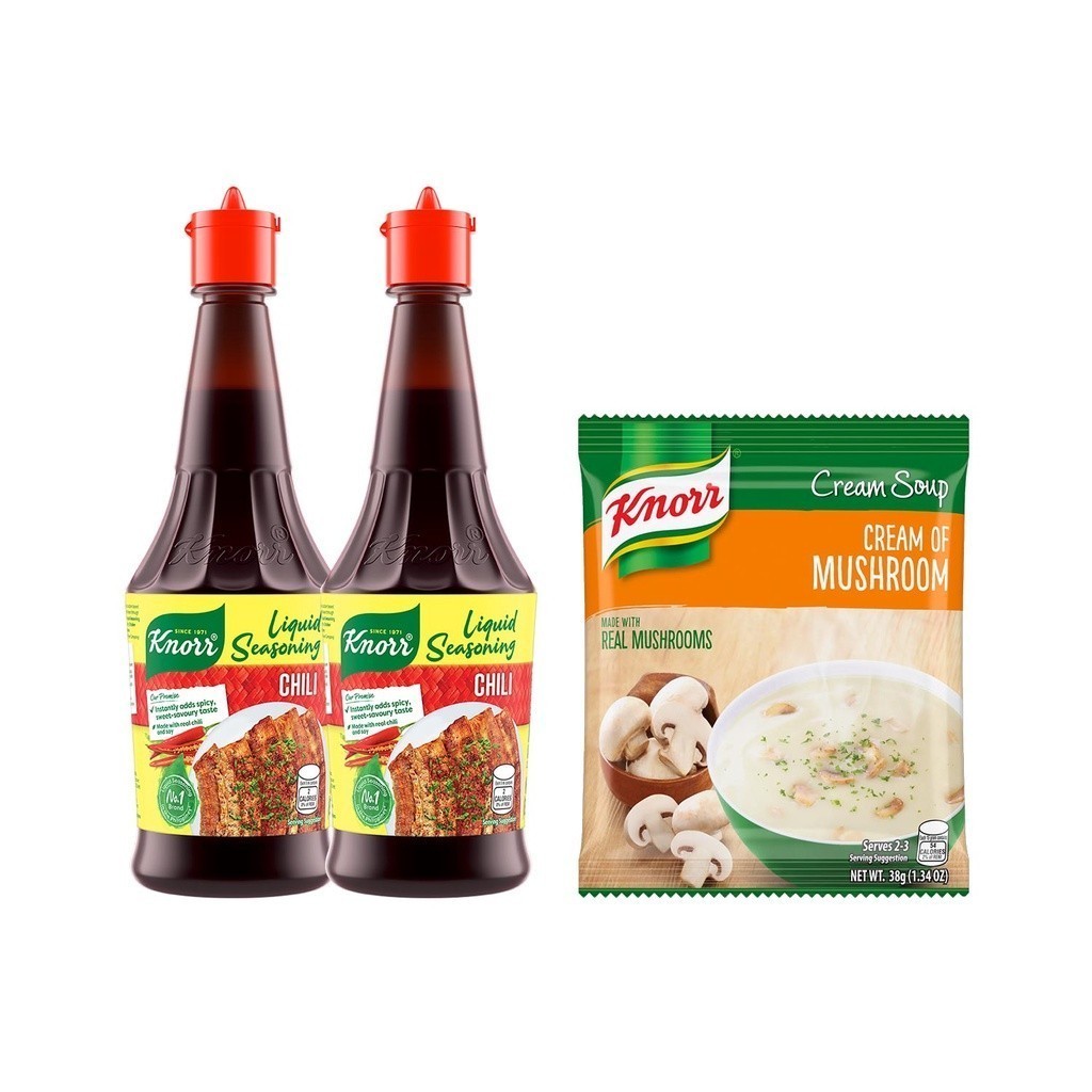 Buy 2 Knorr Liquid Seasoning Chili 250ml Bottle, Get 1 Knorr Cream of Mushroom Soup 38g