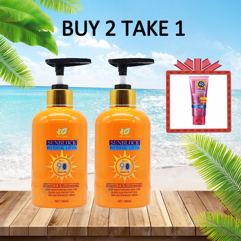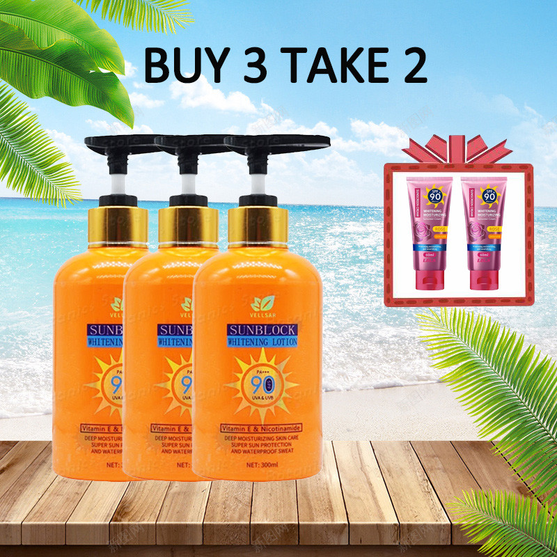 Buy 2 Take 3 Vellsar SPF90+ Sunscreen Lotion Body Whitening Lotion with Vitamin E Anti Aging Sun Pro