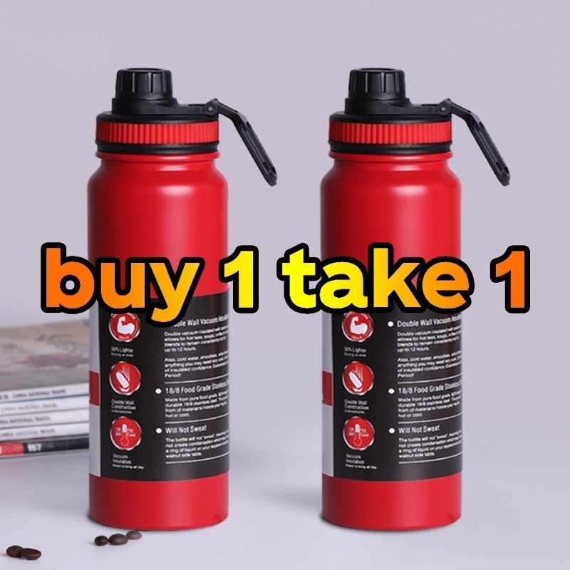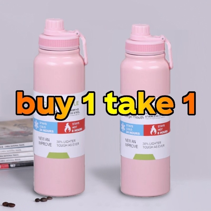 Buy1 take1 Stainles aqua flask tumbler Portable 2 in 1 Tumbler hot cold 1 liter tumbler water bottle
