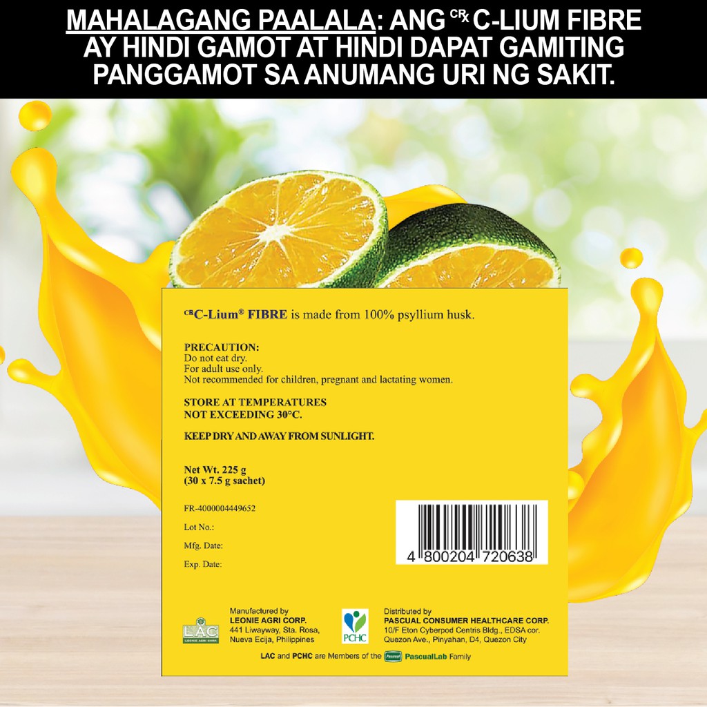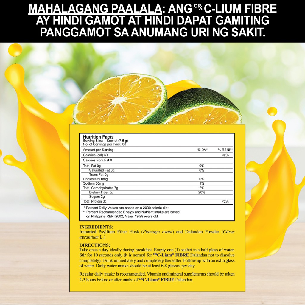 C-Lium Fibre (Psyllium Fiber) Husk Dalandan Flavor 30 Sachets