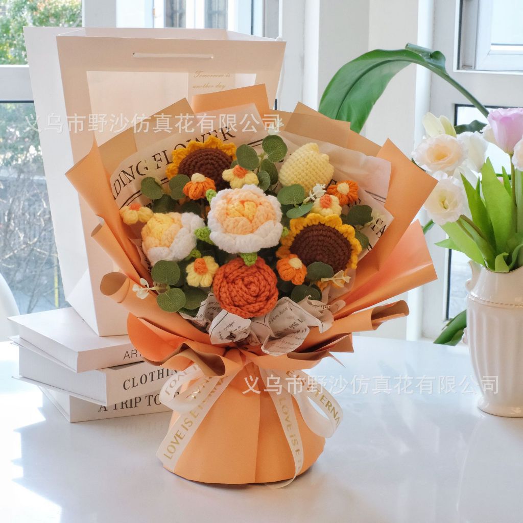 C crochet flower bouquet tulips crochet Tulip bouquet Sunflower Rose Daisy Simulation flower Wool Knitting Homemade crochet bouquet
