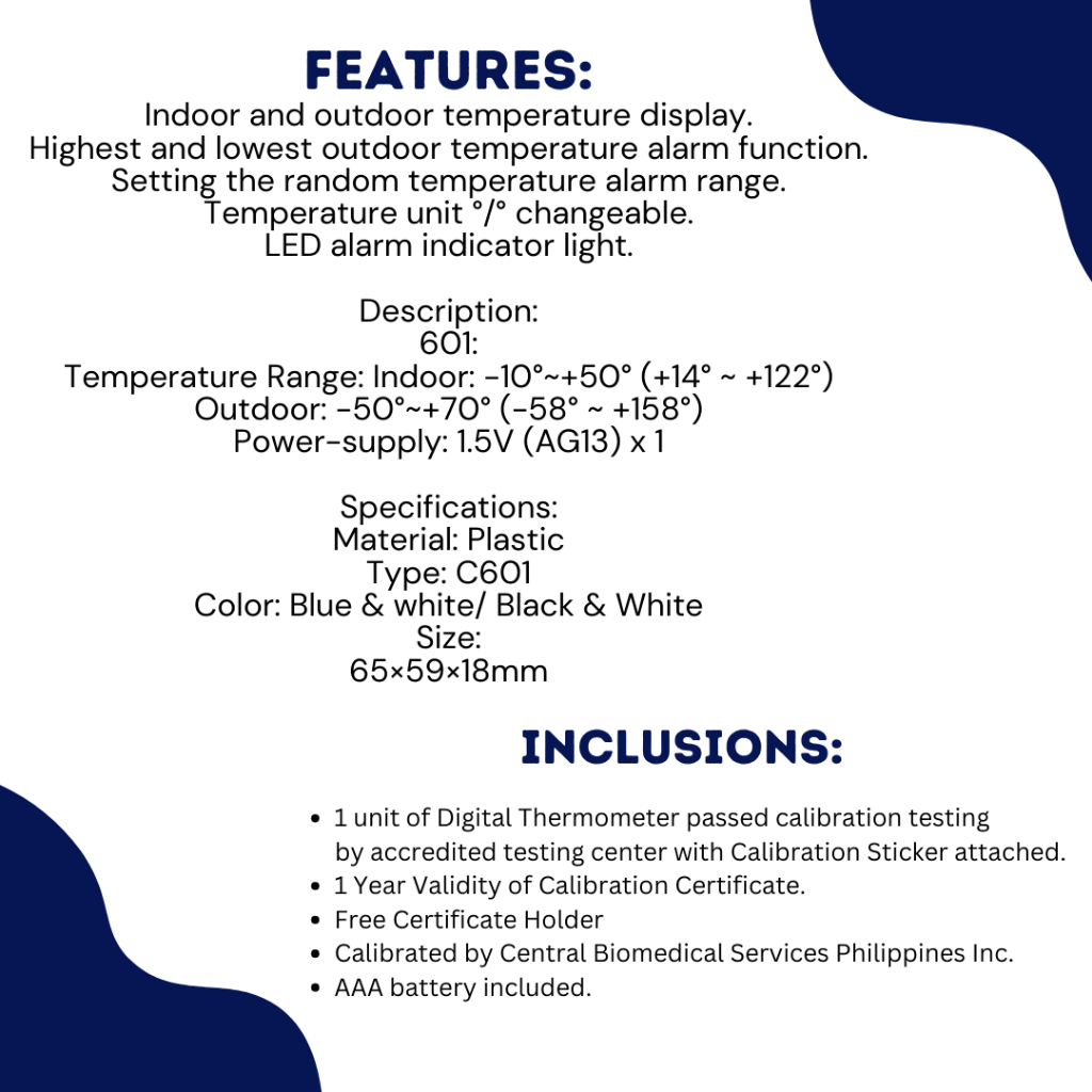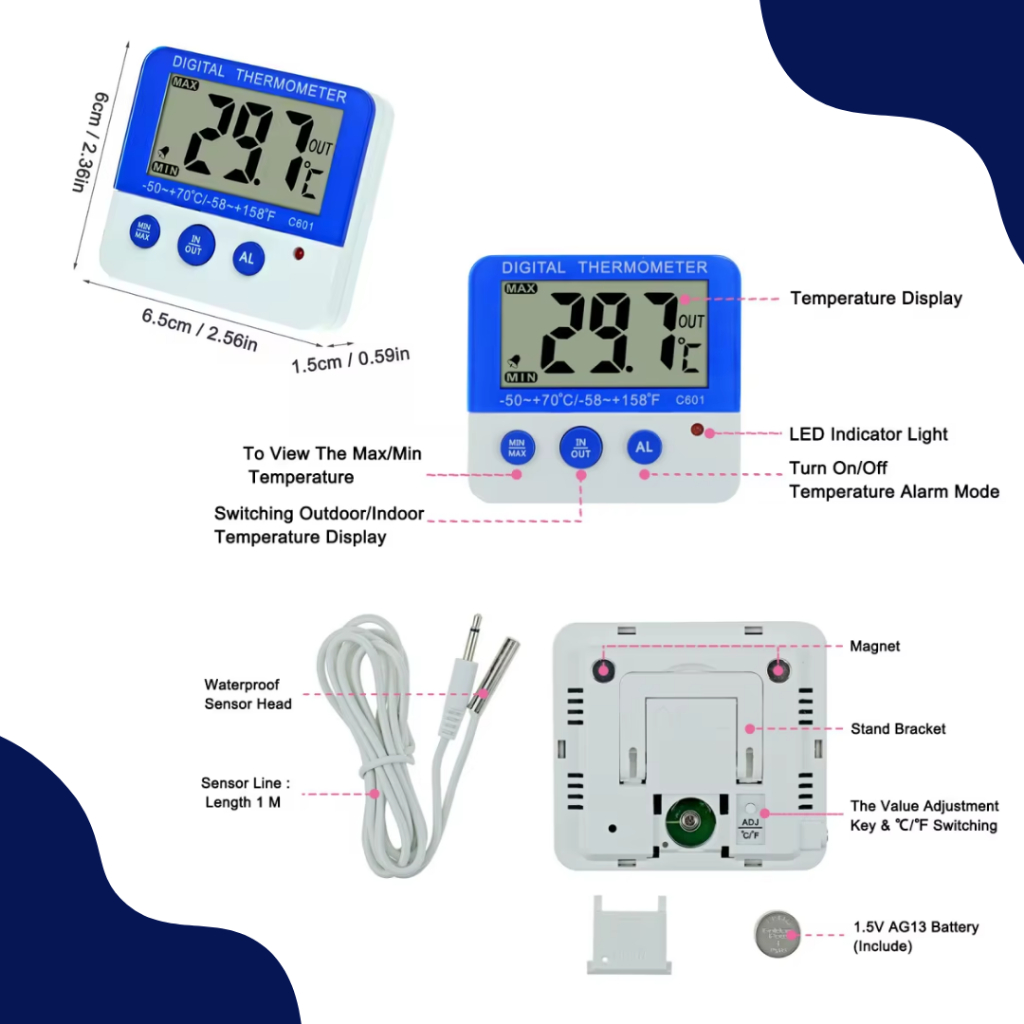 CALIBRATED Thermometer with Calibration Certificate for Ref, Freezer, Cold Room
