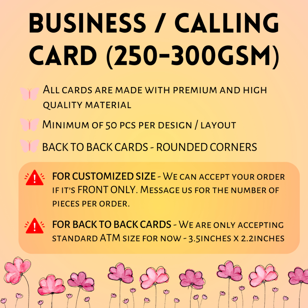 CALLING CARD / BUSINESS CARD / TRANSPARENT CARD / GLITTERY / HOLOGRAM / 3D / LEATHER / RAINBOW