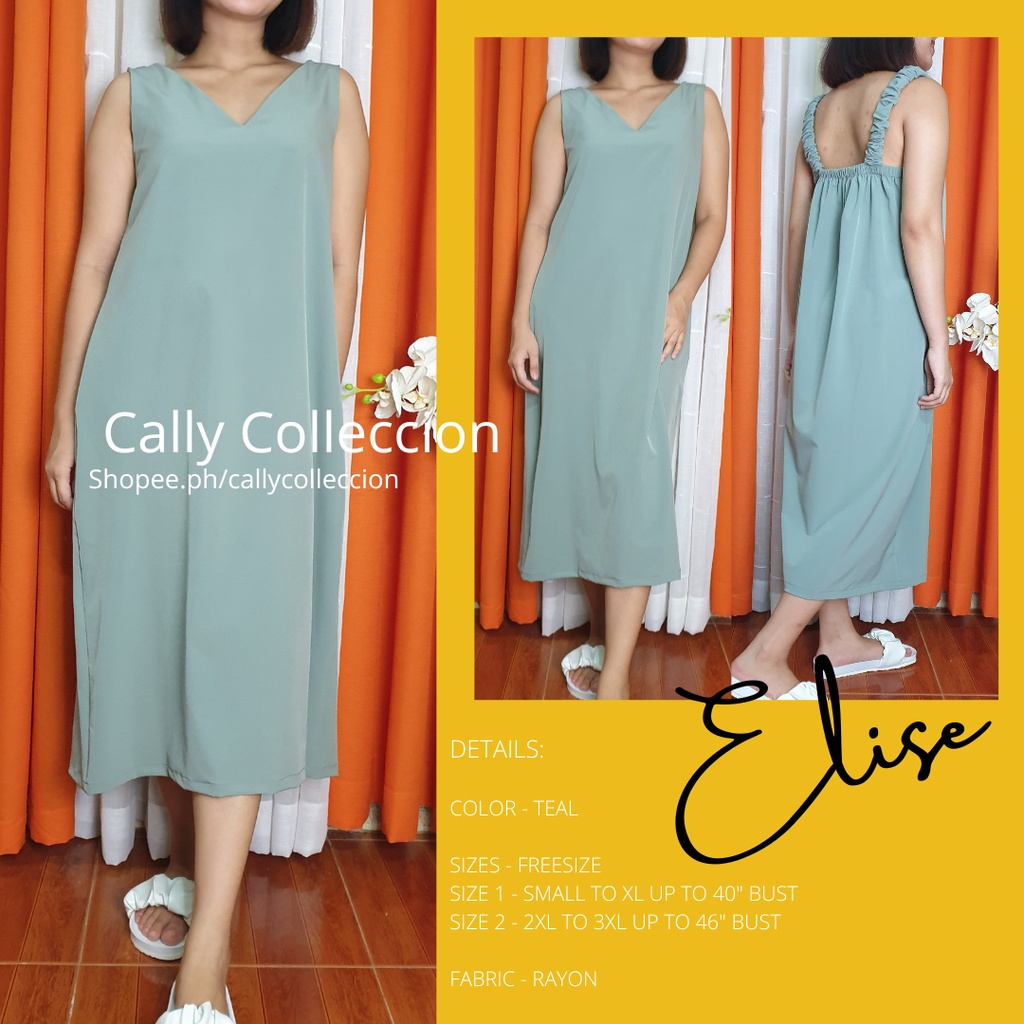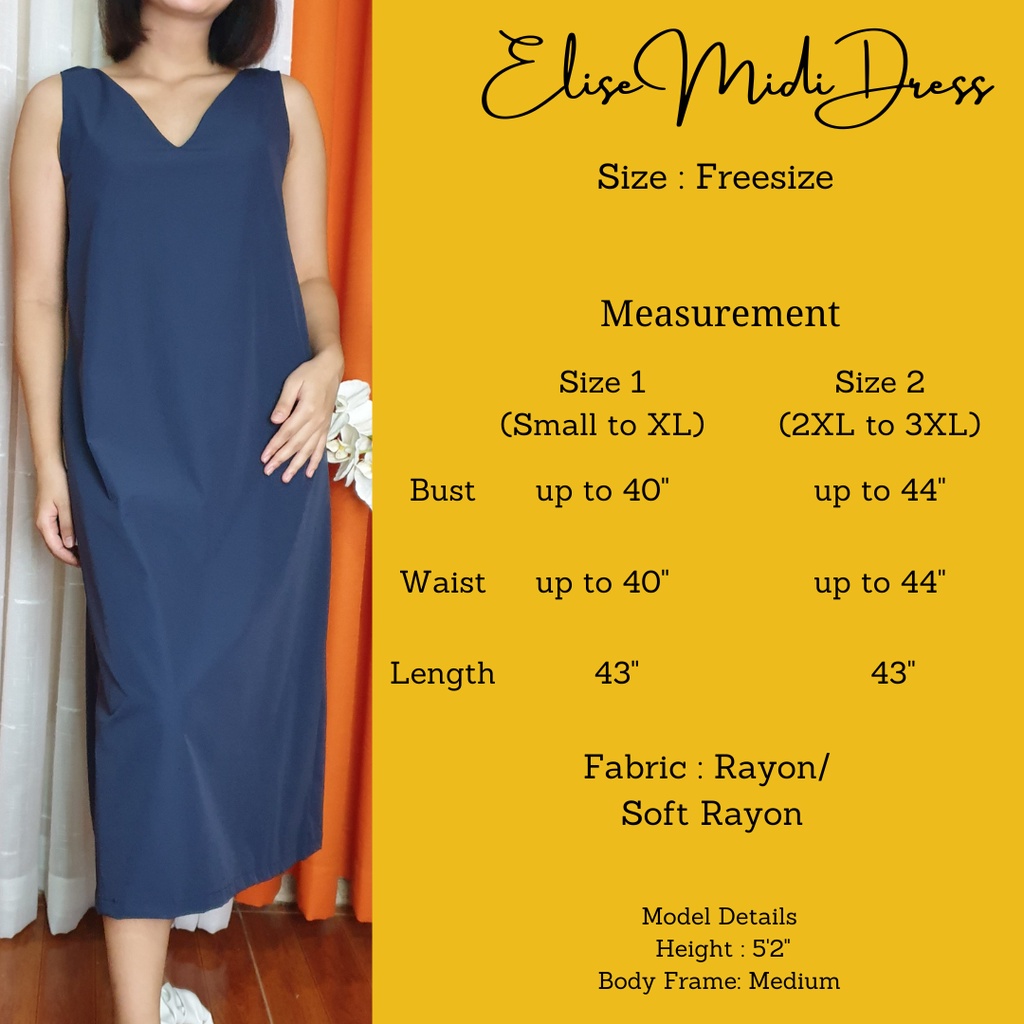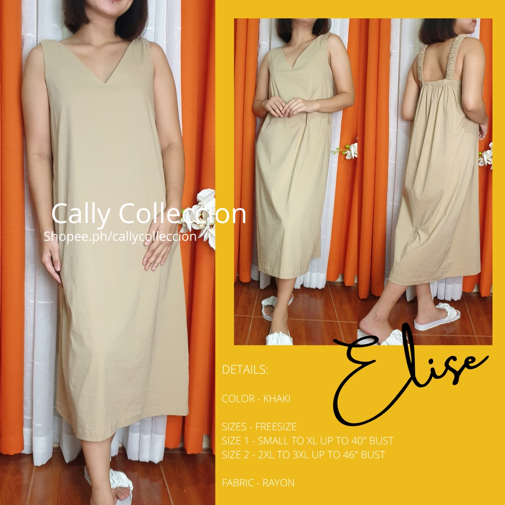 CALLY - ELISE Dress for Women Tunic Midi Dress Garterized Back up to Plus Size