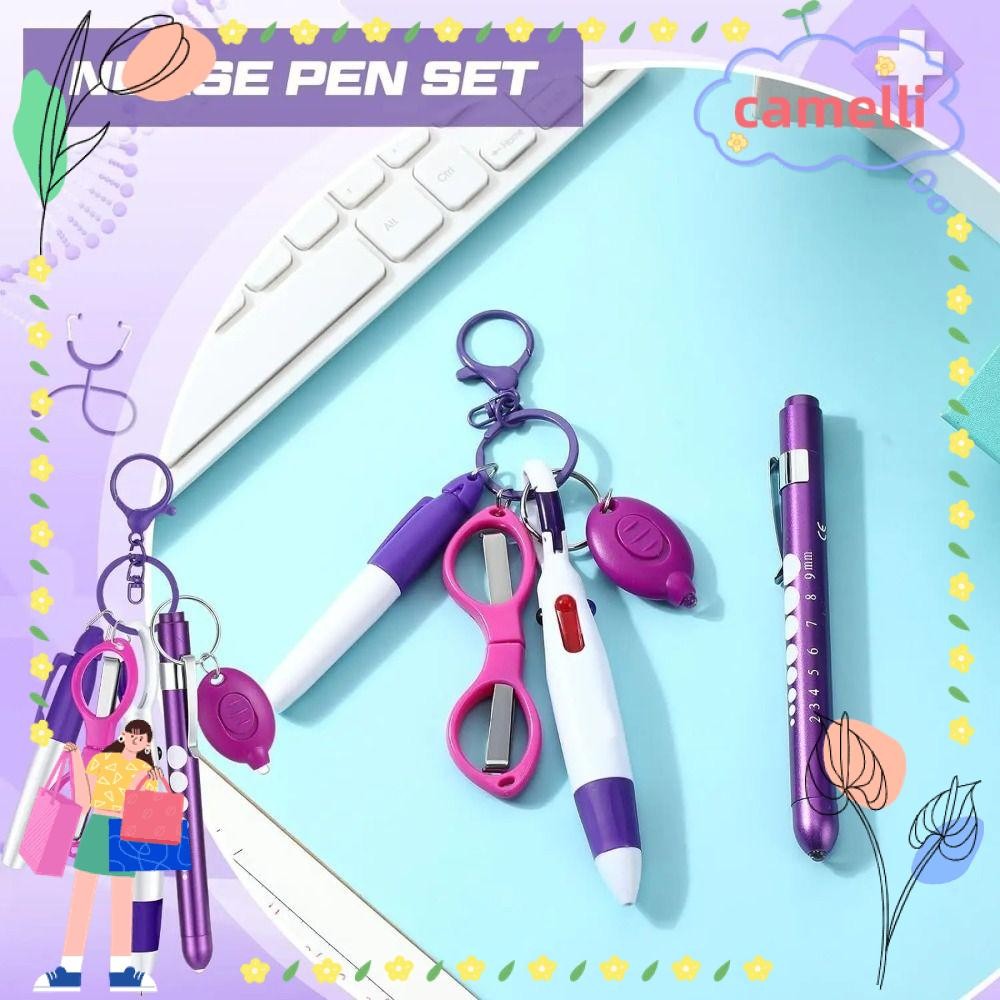 CAMELLI Retractable Ball Pen Set, 6-in-1 Multifunction Portable Nurse Pens, Nurse Badge Set Permanent Marker Flashlight Foldable Ballpoint Pen Keychain
