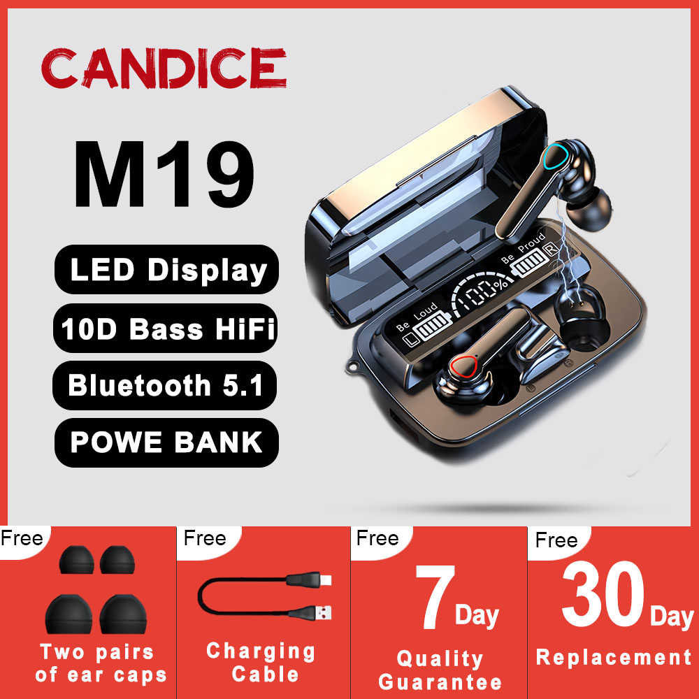 CANDICE Headset Bluetooth TWS Earphone M10 mega bass Headphone gaming super Digital Indicator V5.1
