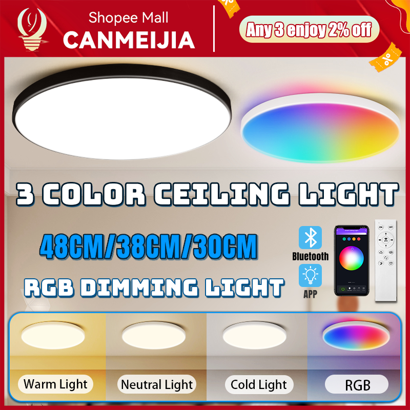 CANMEIJIA 3 Color LED Ceiling Light RGB Intelligent Remote Control Dimming Color Adjustment Modern And Simple Circle Living Room Bedroom Dining Room Lamps