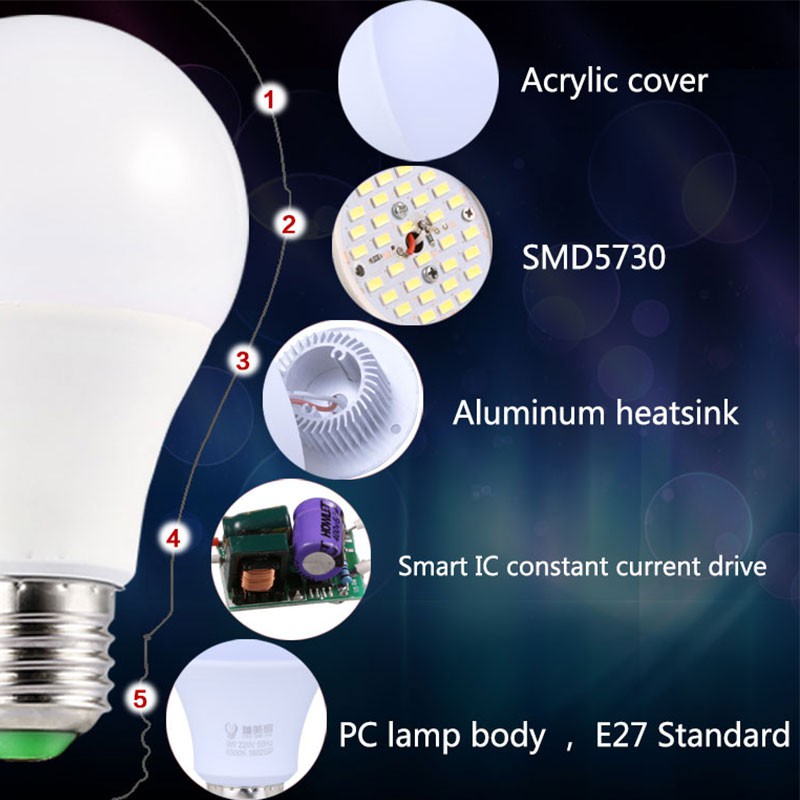 CANMEIJIA E27 LED Lamp Bulb Ac 110v 220v 7W 9W 12W led Spotlight Table Lamps Light High Brightness