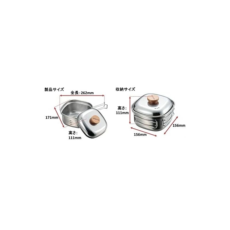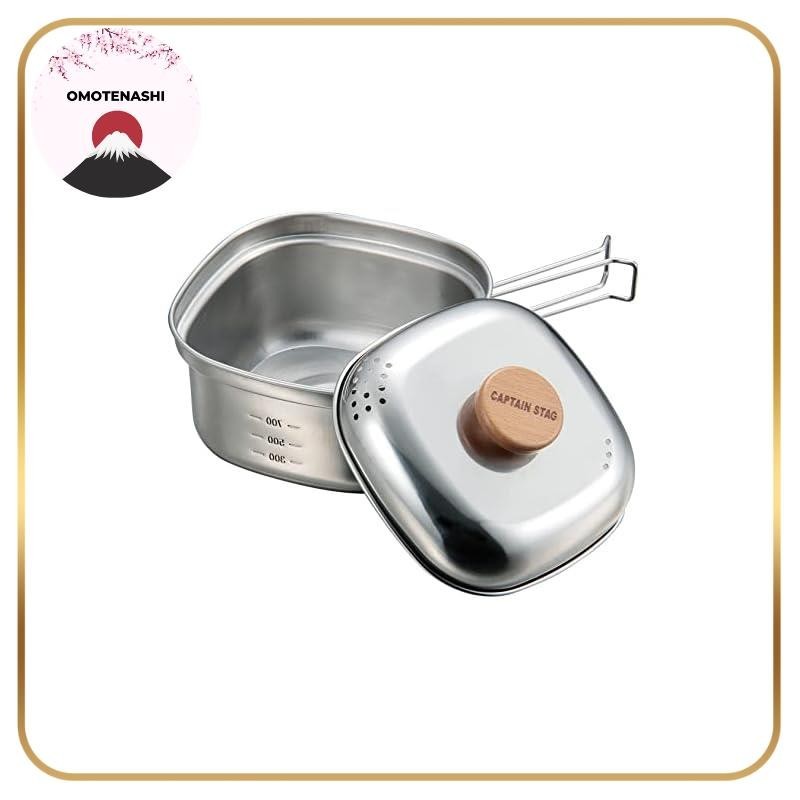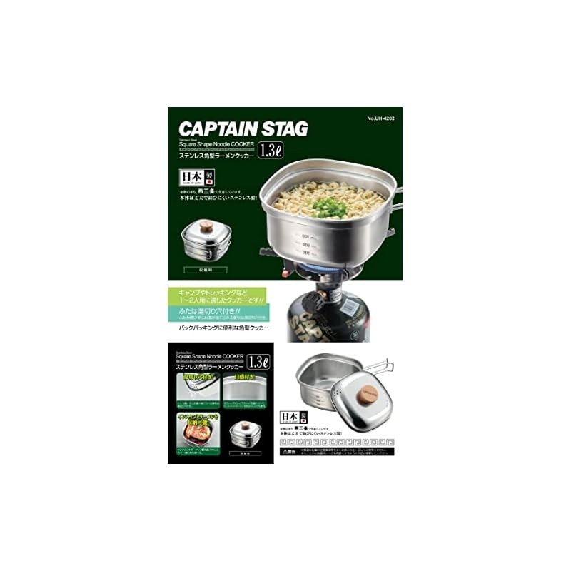 Captain Stag stainless steel square ramen cooker, 1.3 liters, made in Tsubame-Sanjo, Japan, model UH-4202