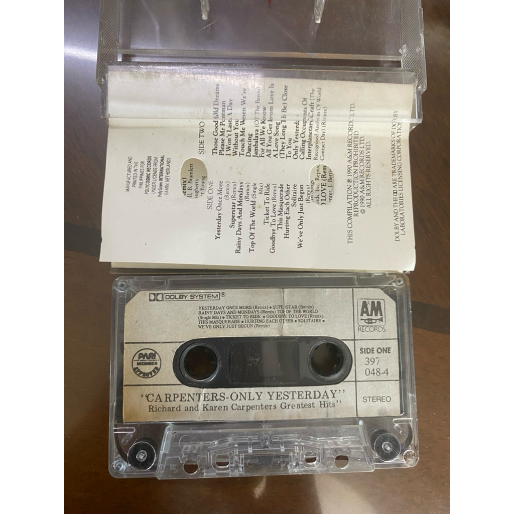 CARPENTERS ONLY YESTERDAY GREATEST HITS - Philippines Original Music Album Cassette Tape - Preloved