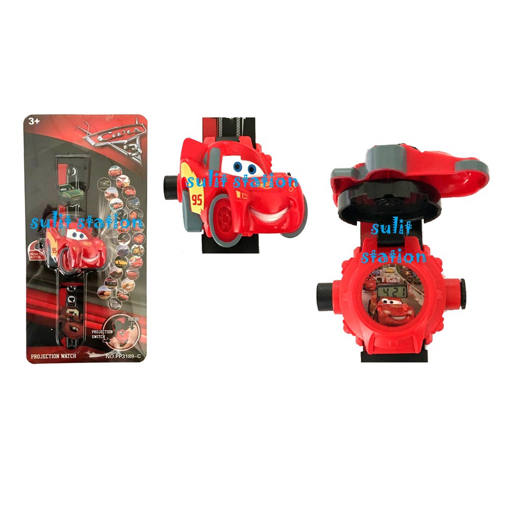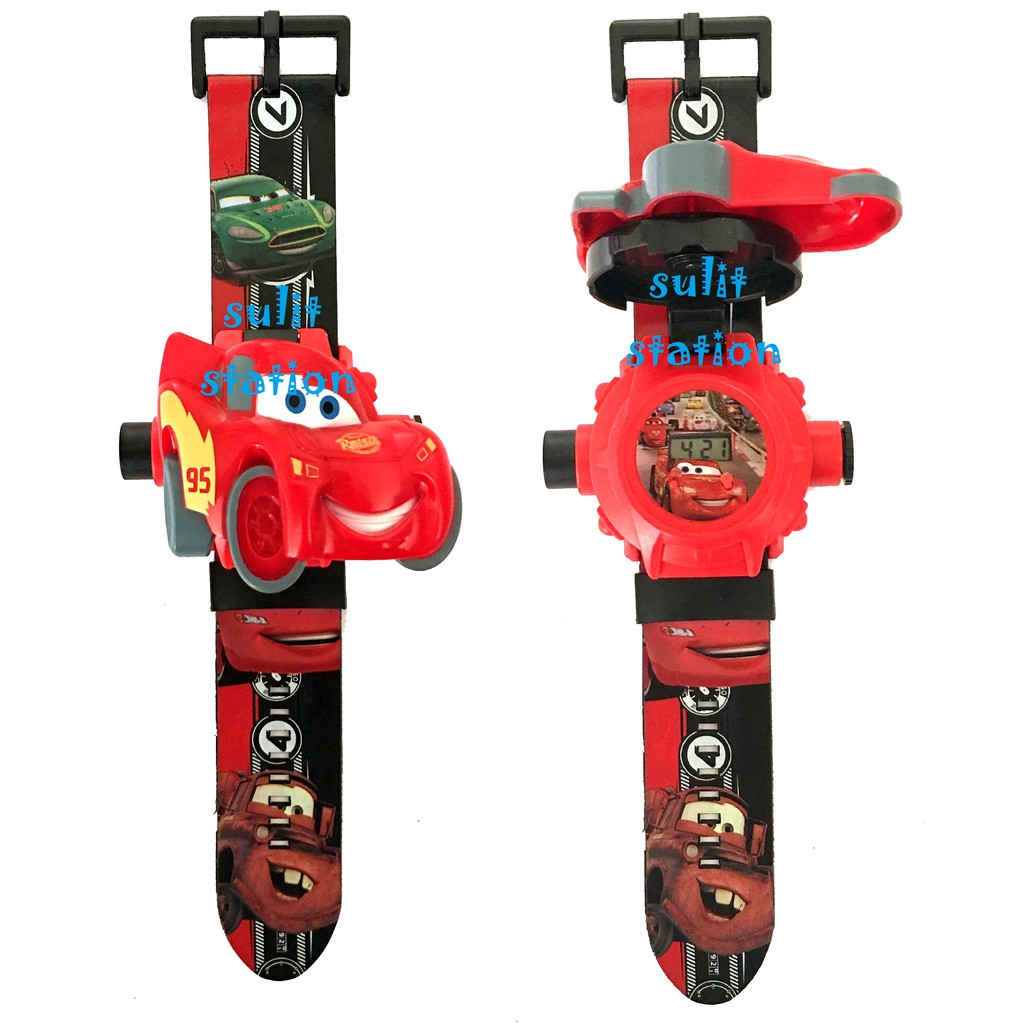 CARS LIGHTNING McQUEEN CAR KIDS 3D HEAD COVER PROJECTOR LIGHTS DIGITAL TIME WRIST HAND WATCH WATCHES