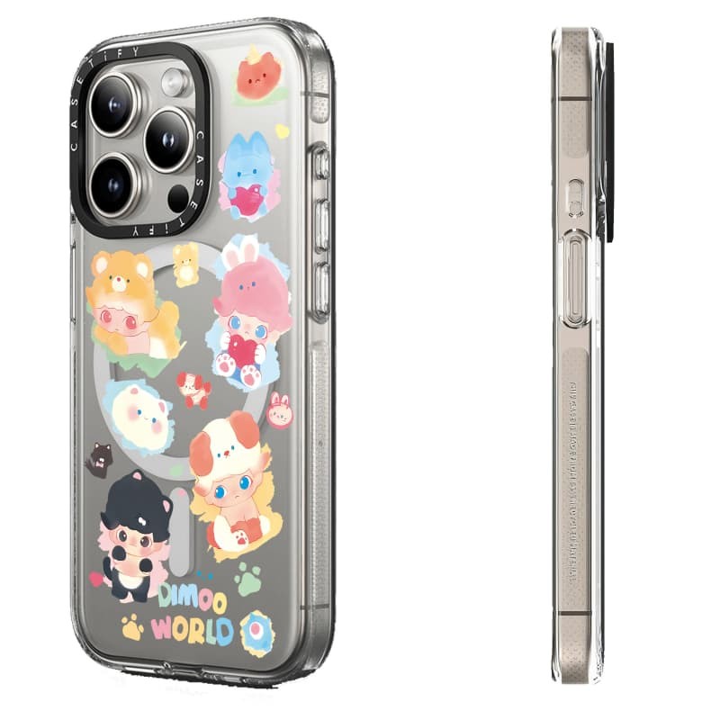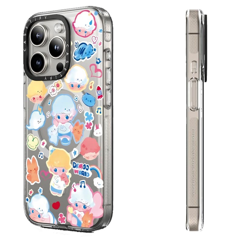 CASECASE X POP MART - DIMOO WORLD Series Magnetic suction Clear Hard Acrylic Back iPhone Case Impact Case For Apple IPhone 13 14 15 16 Pro Max 16 With Box