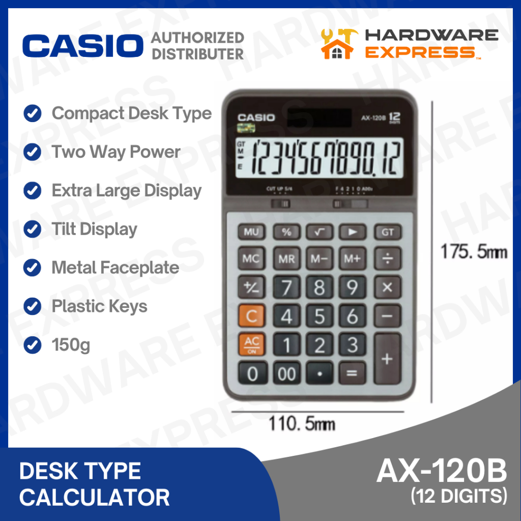 CASIO Calculator AX-120B AX120B Extra Large Display 12 Digit Calculator
