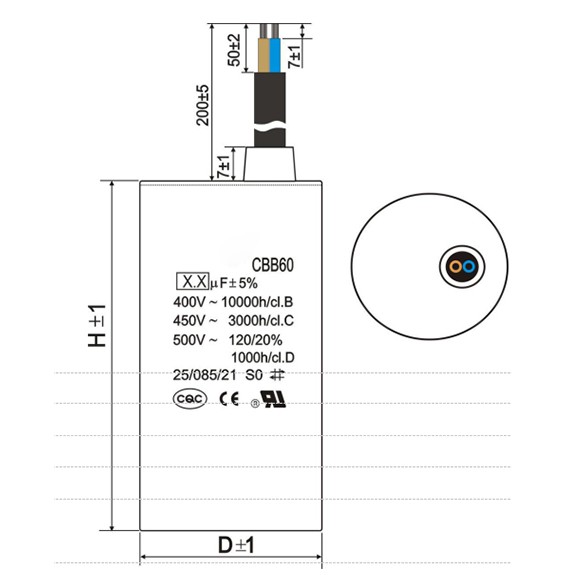 CBB60 400V 450V AC Starting Capacitor CBB60 5% 4uF 5uF 6uF 8uF 10uF 12uF 14uF 15uF 16uF 20uF 24uF 25uF 30uF 35uF 40uF 45uF 50uF 60uF 70uF 80uF for Washing Machine