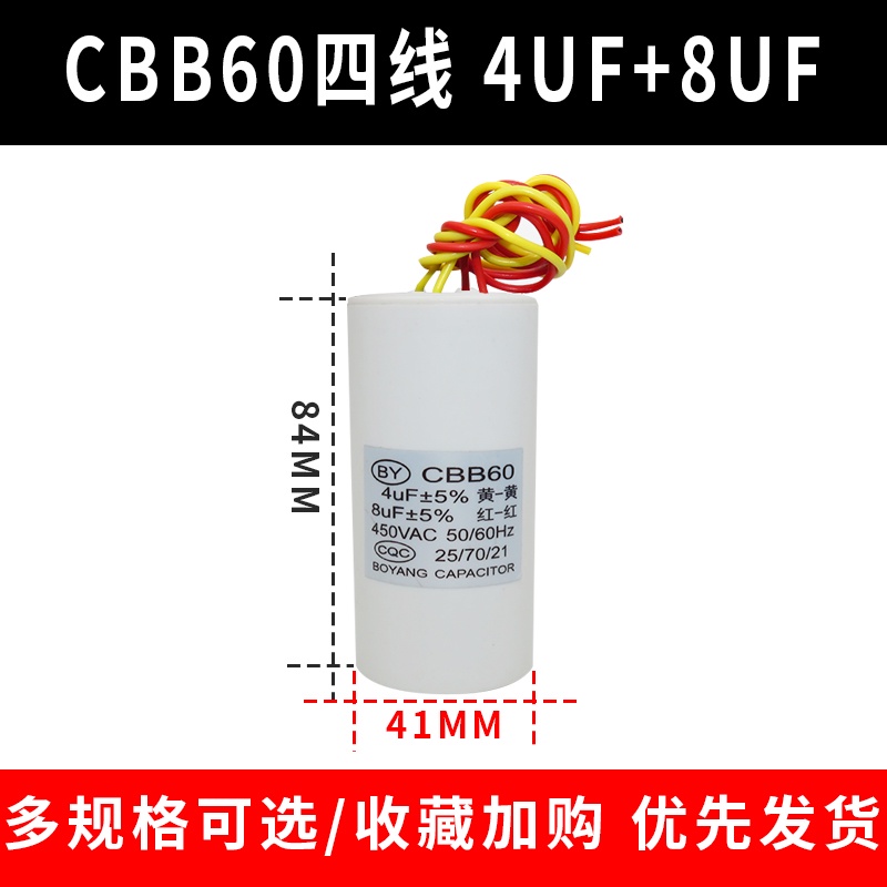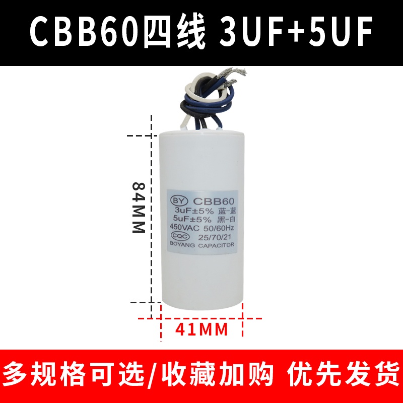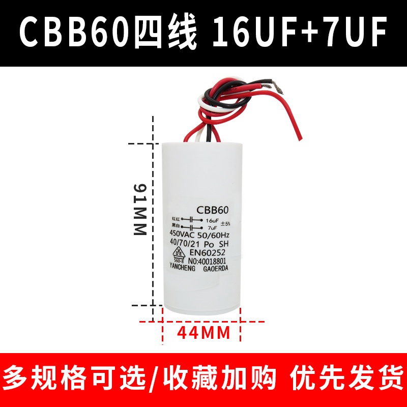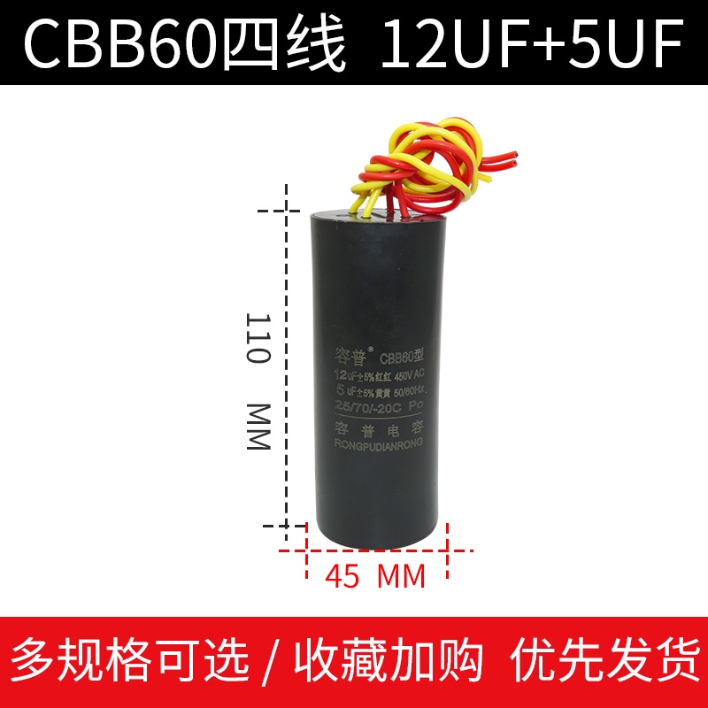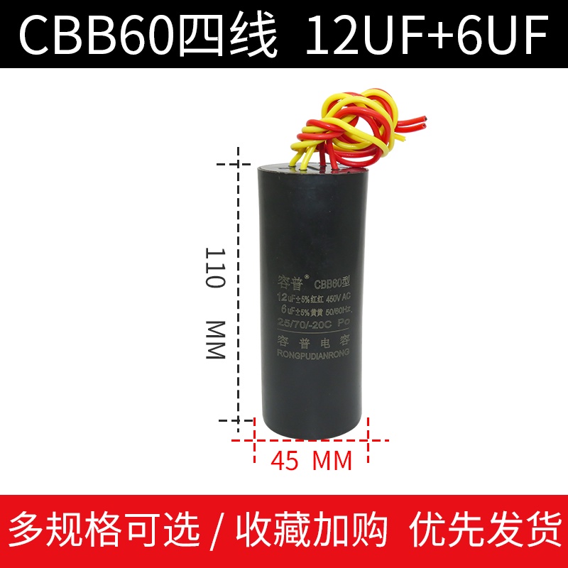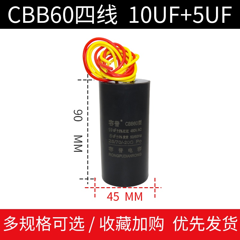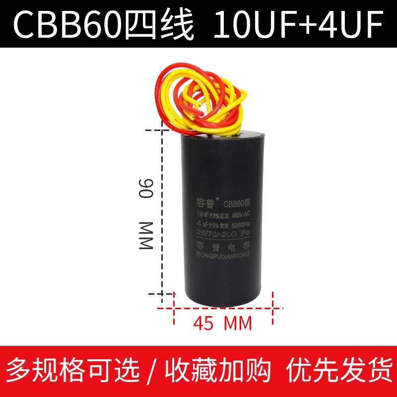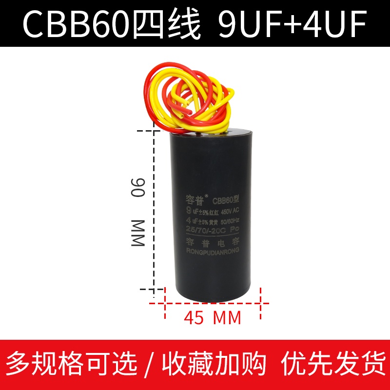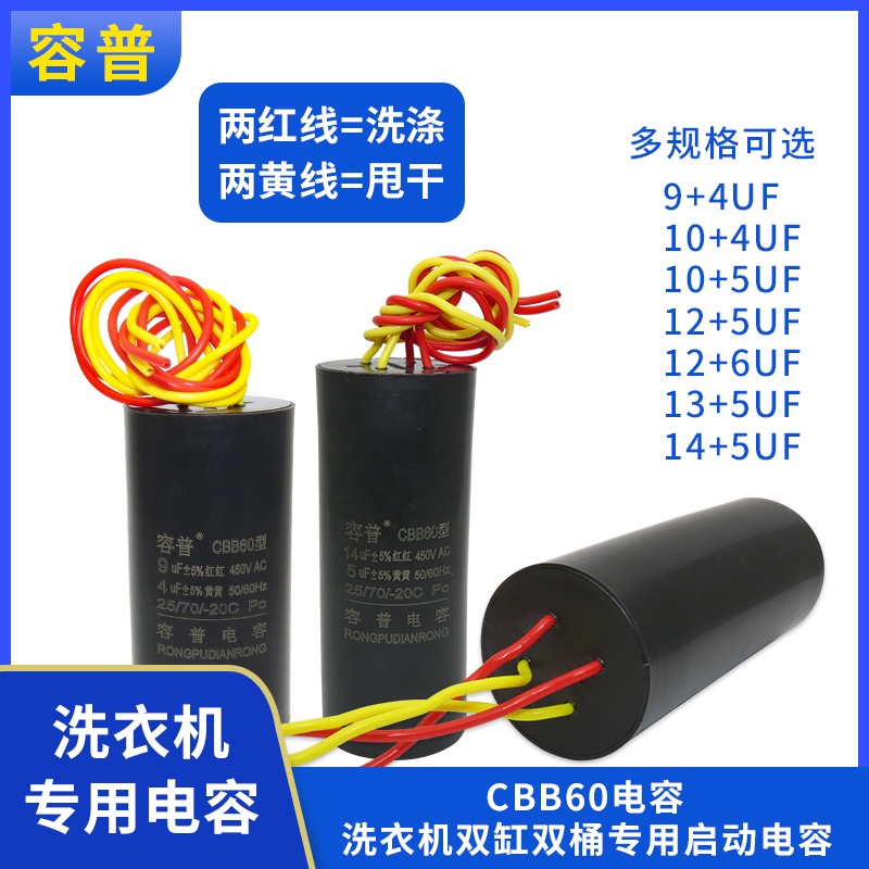 CBB60 Double Barrel Washing Machine Start Capacitor 9+4/10UF+5/12+6UF/14+5UF Four-Wire Dual Cylinder Capacitance International Regular