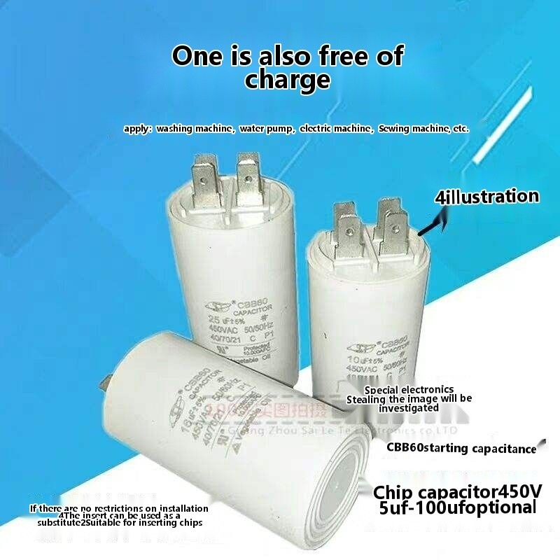 CBB60 chip capacitor 5/6/8/10/15/20/25/30/50/100UF450V washing machine water pump capacitor