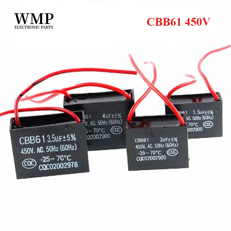 CBB61 Fan Starting Capacitor 450V 1/1.2/1.5/1.8//2/2.5/3/3.5/4/4.5/5/6/7/8/10/12/16/18/20 UF Fan Capacitor for Range Hood Fan