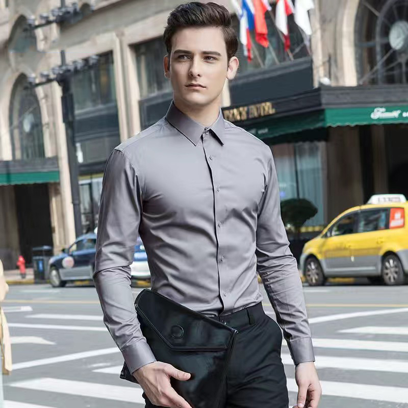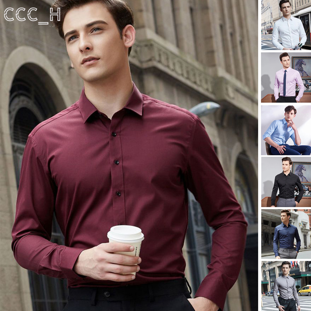 CCC-H Formal Business Shirt For Men Long Sleeve Gentlemen Office Shirts Slim Fit