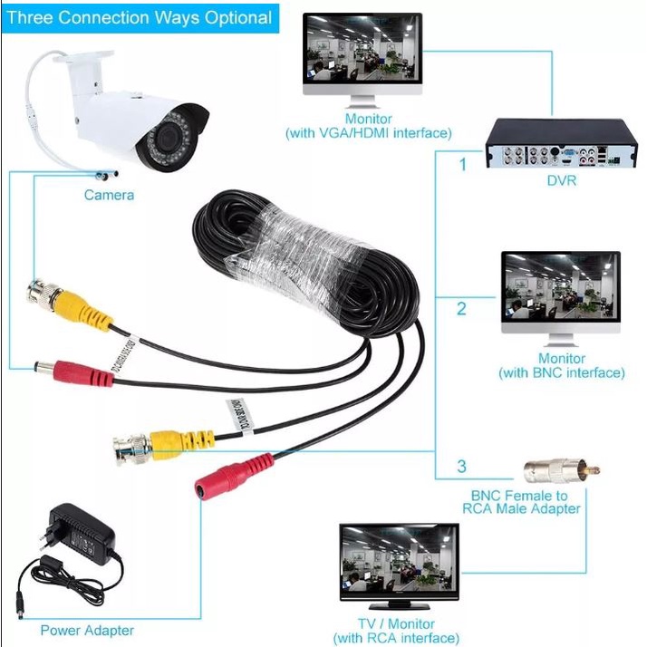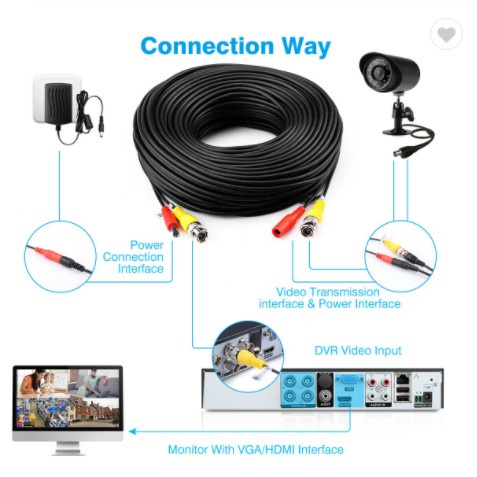 CCTV CABLES 30m/40m/50cm BNC+dc Cable DVR Wire Cord+DC Plug Power Extension Cable for CCTV