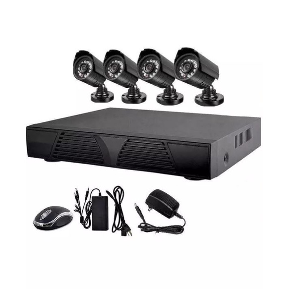 CCTV Package with 4 Channel DVR Surveillance Security Night Vision Camera System (Black)