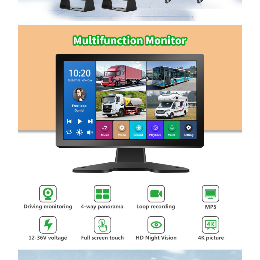 CCTV Recorder Security Mobile Tracking DVR 4K 7inch IPS Monitor Truck Blind Spot Detection System B
