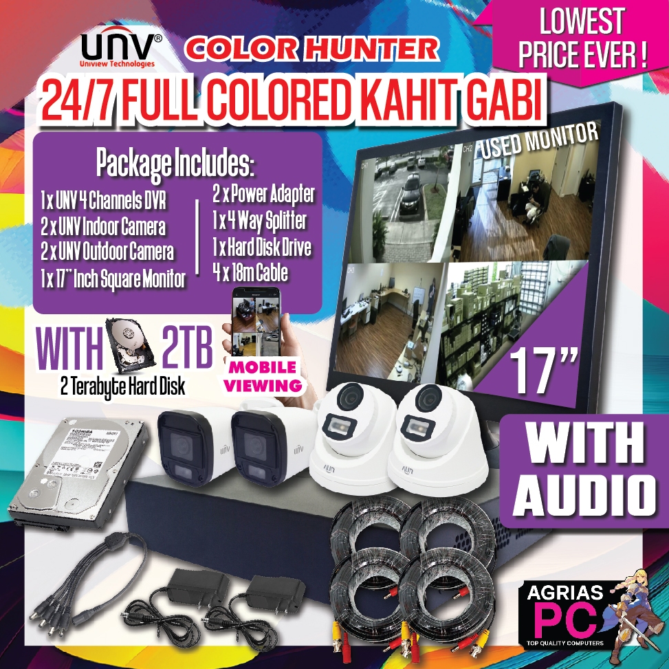 CCTV UNV COLOR HUNTER WITH AUDIO PACKAGE / DVR 4 Channel / WITH HARD DISK OPTION / MONITOR