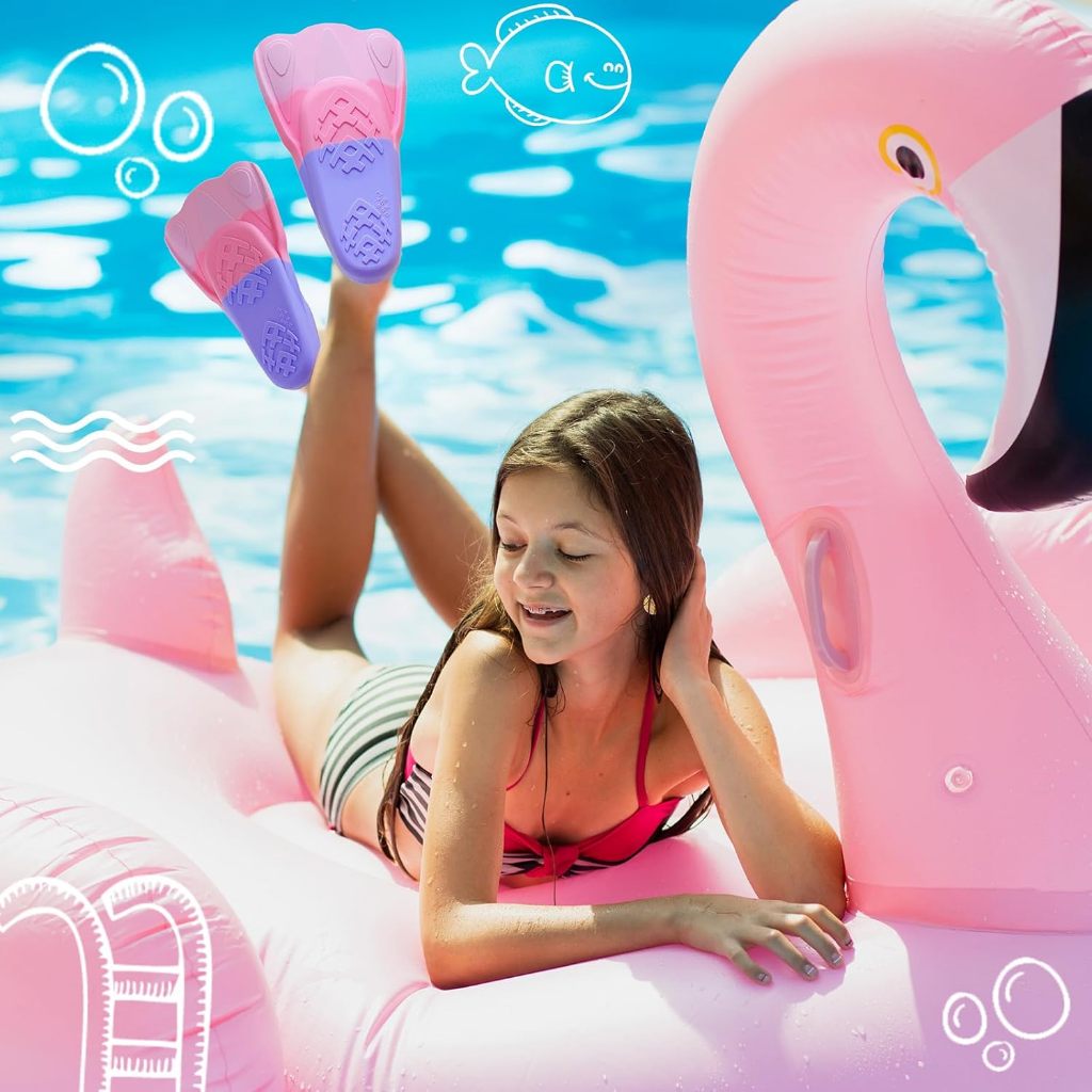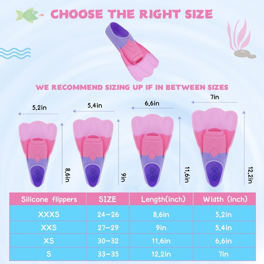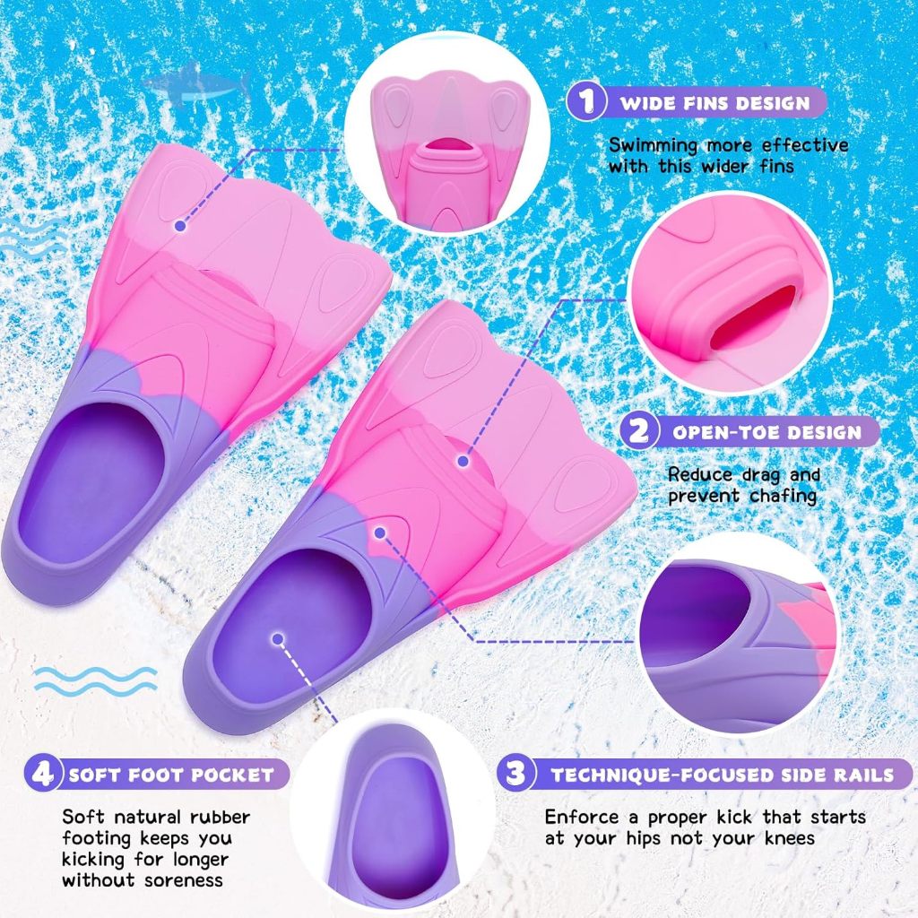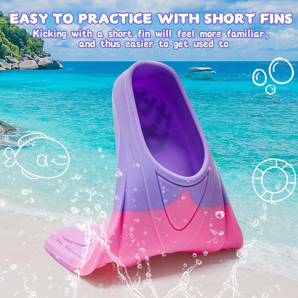 CCZedo Kids Swim Training Fins, Comfortable Silicone Short Fins for Lap Swimming Flippers, Travel Size Flipper for Kids with Mesh Bag