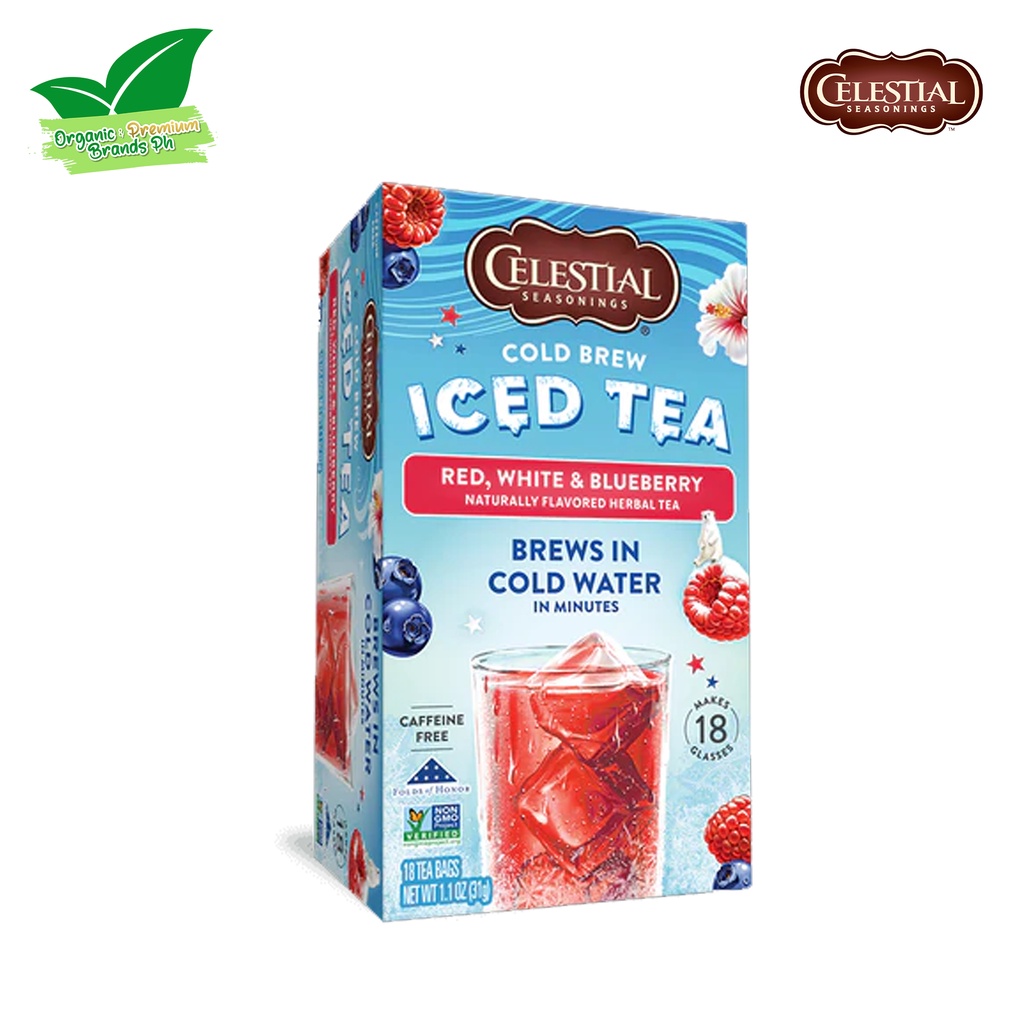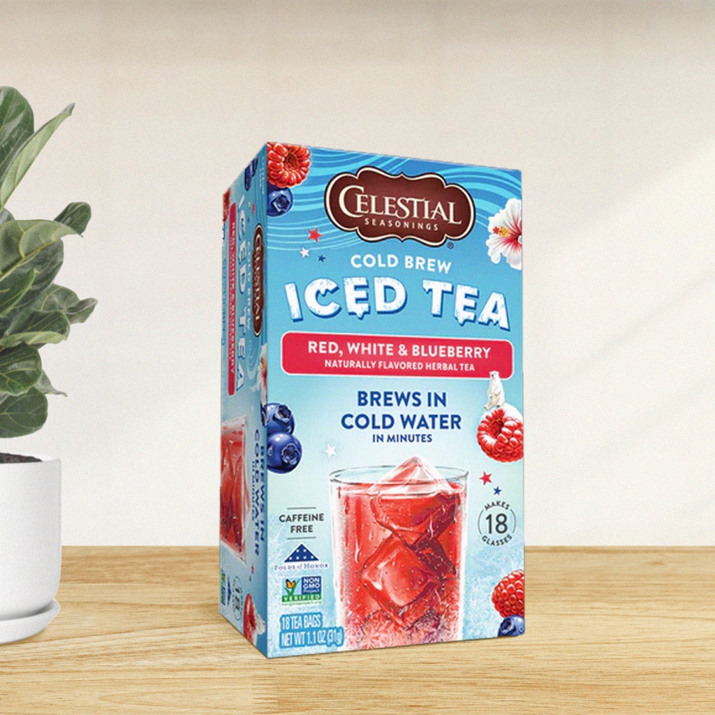 CELESTIAL SEASONINGS COLD BREW ICED TEA Red White Blueberry Herbal Tea - 18 Tea Bags (31g)