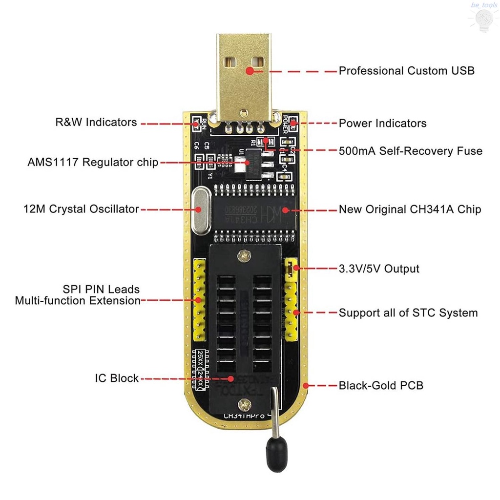 CH341A USB Programmer EEPROM BIOS Flasher Programmable Logic Circuits with SOP8 Flash Clip Suitable for 24/25 Series Chip
