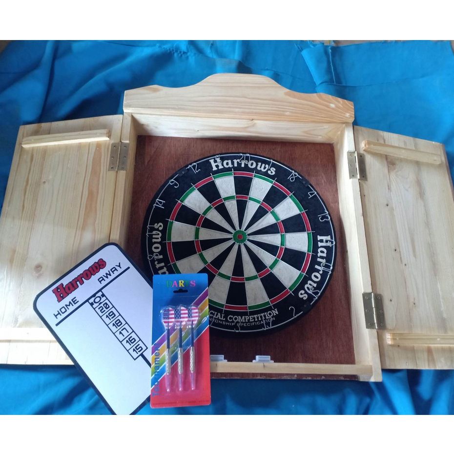 CHAMPION HARROWS DART BOARD w/ CABINET, SCORE BOARD AND DART PINS(ABLP BILLIARD ACCESSORIES)