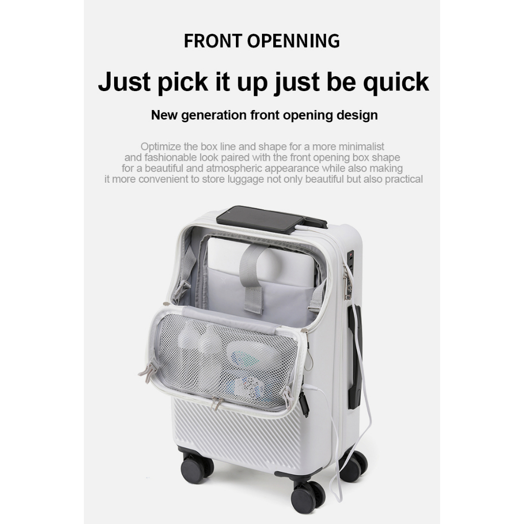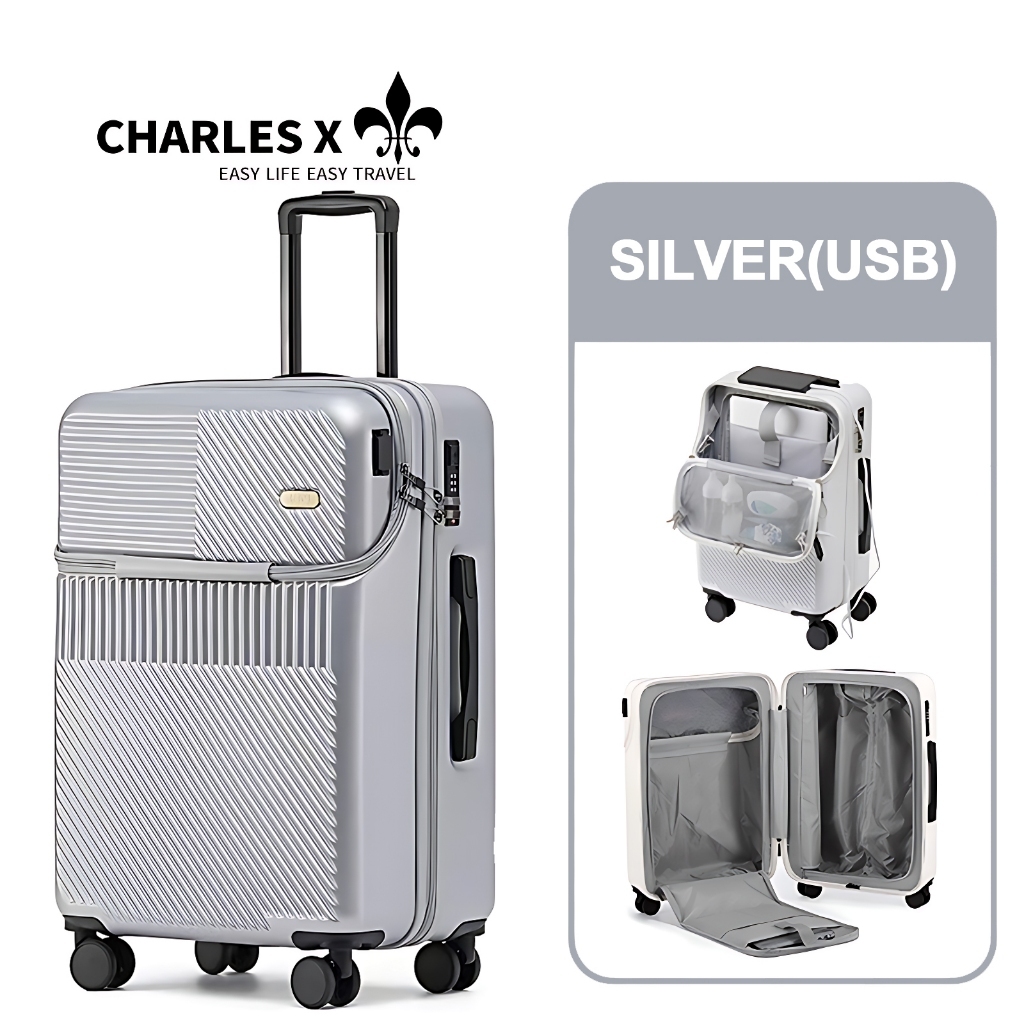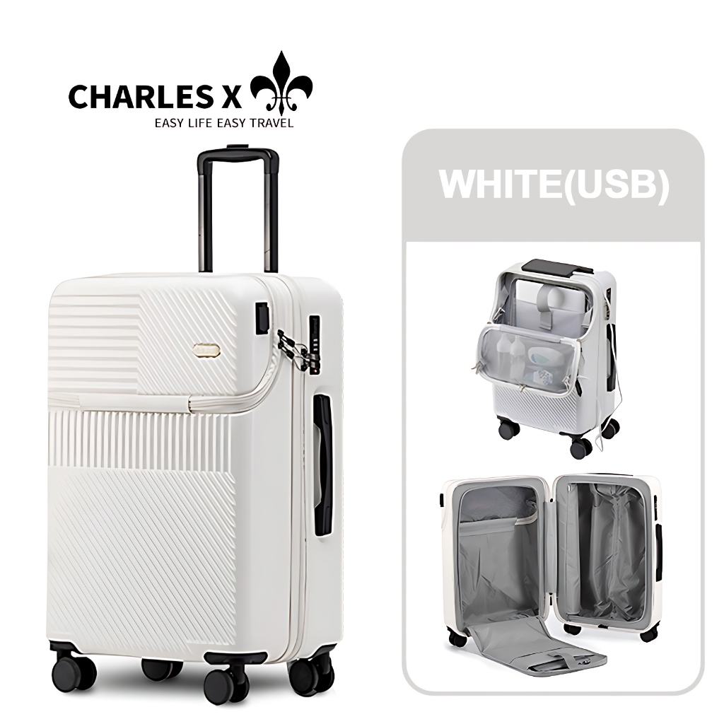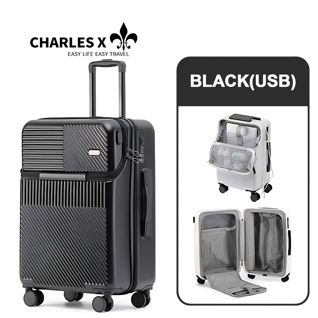 CHARLES X USB Rechargeable Luggage front opening combination suitcase Japanese style Luggage