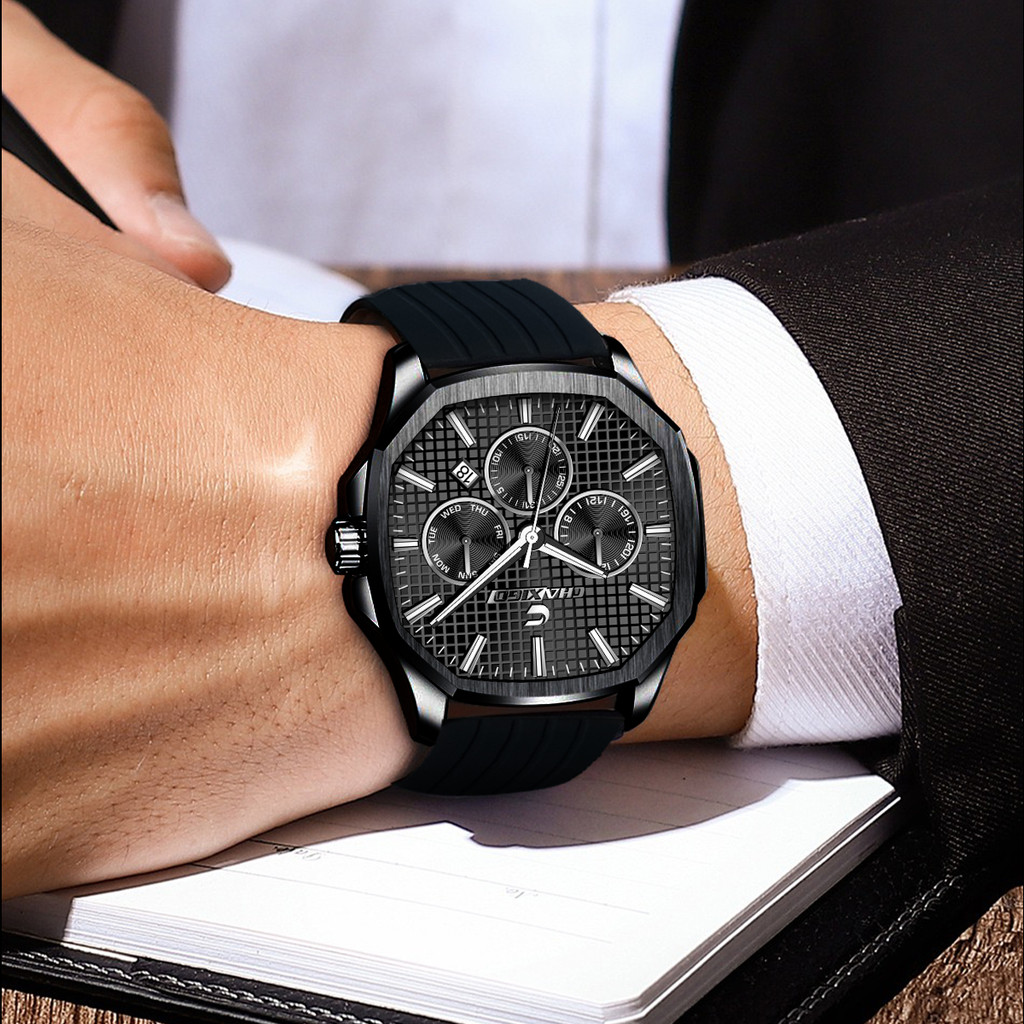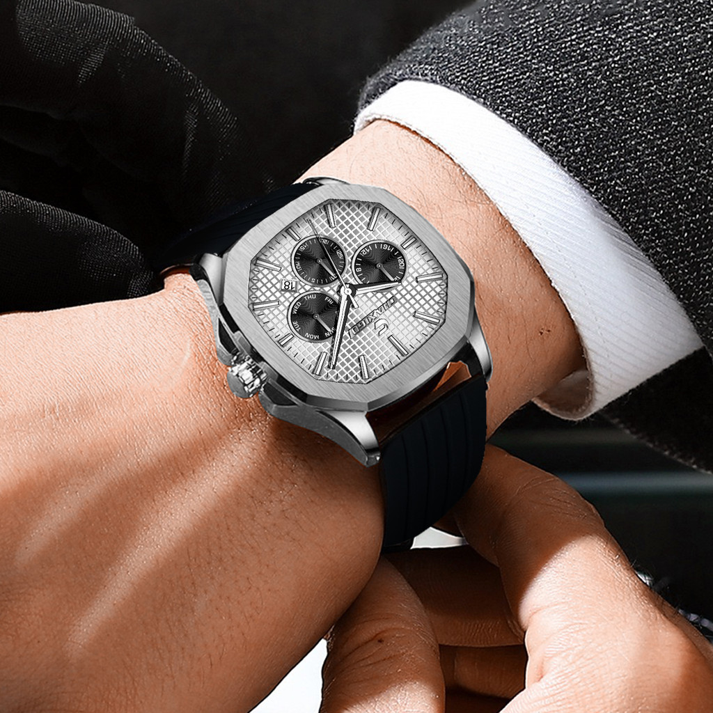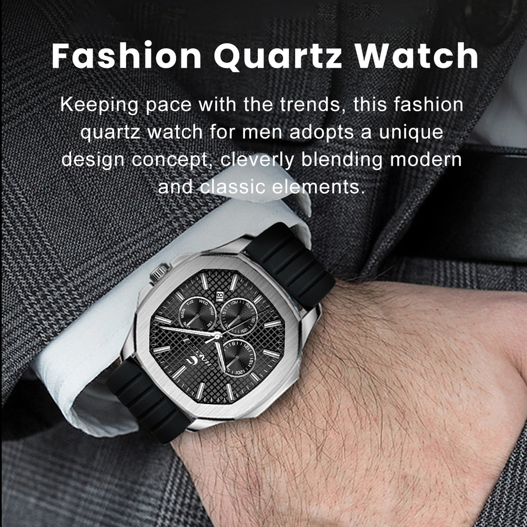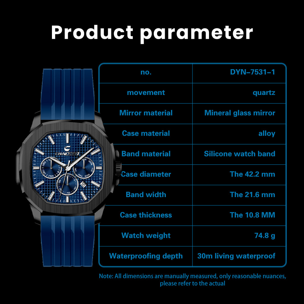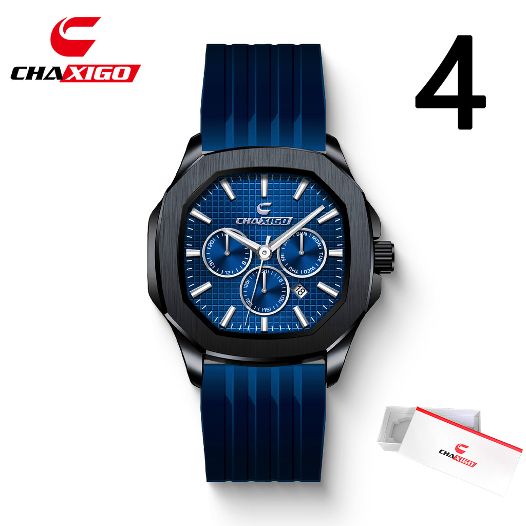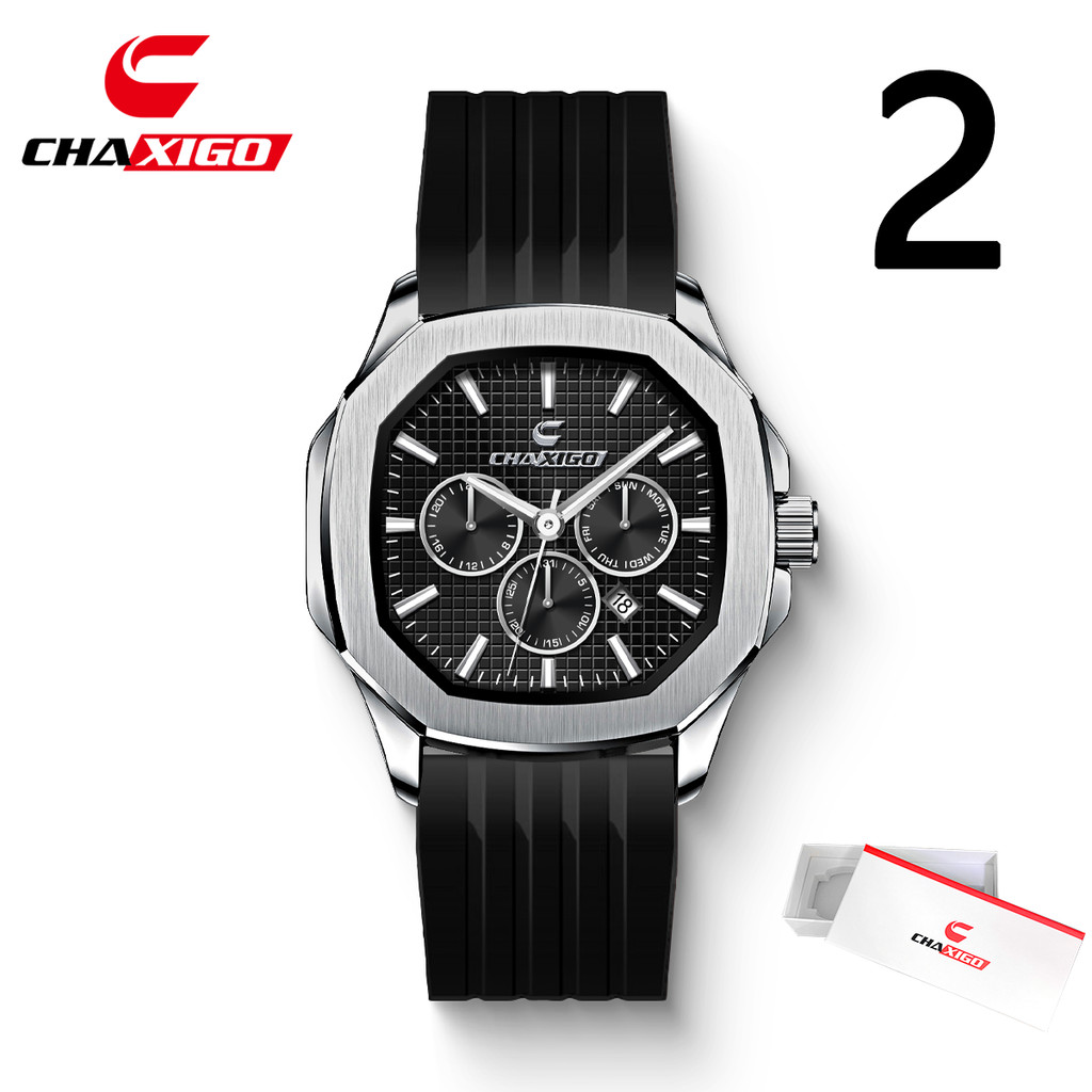 CHAXIGO Watch for Men Luxury Brown Silicone Waterproof Quartz Sport Date Display Luminous Fashion Square Round Dial Wristwatch 6545G