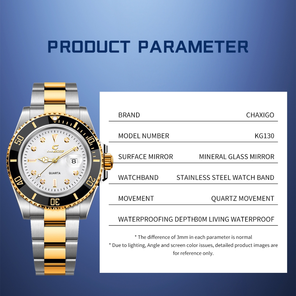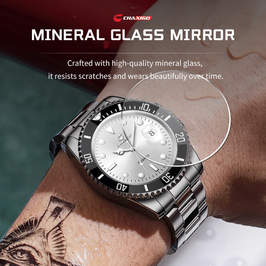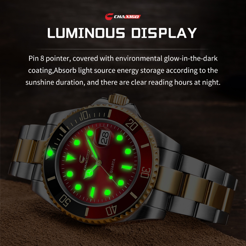 CHAXIGO Watch for Men | Waterproof Luminous Green Submariner Style | Stainless Steel Quartz Business Watch | Fashion Sport Wristwatch | Original Quality | KG130