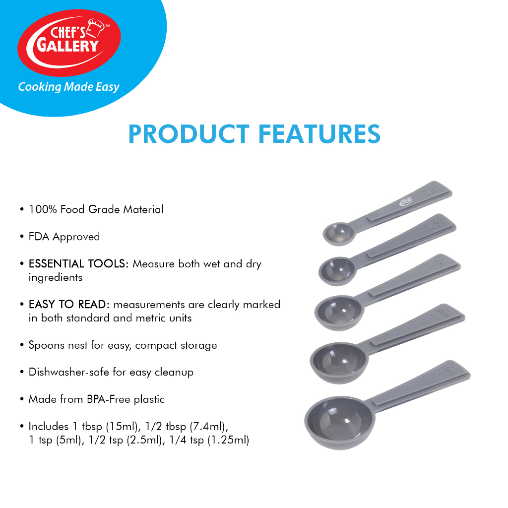 CHEF'S GALLERY Measuring Spoon, Teaspoon And Tablespoon Spoon Sizes, 100% Food Grade Material