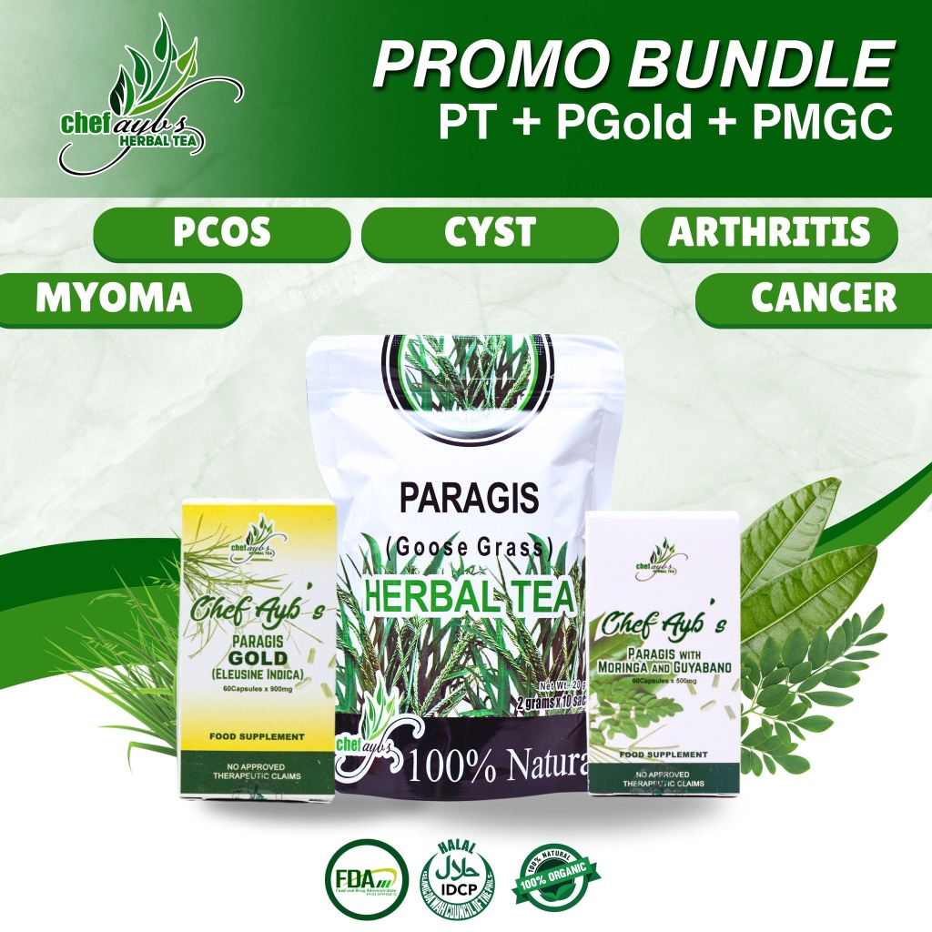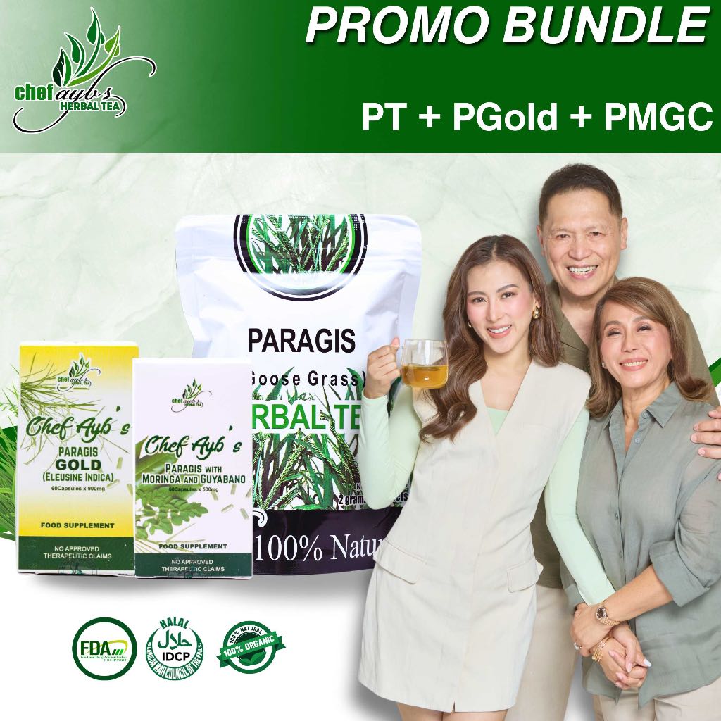 CHEF AYB'S SUPER BUNDLE || 1 PARAGIS TEA, 1 PARAGIS WITH MORINGA AND GUYABANO CAPSULE AND 1 GOLD CAP