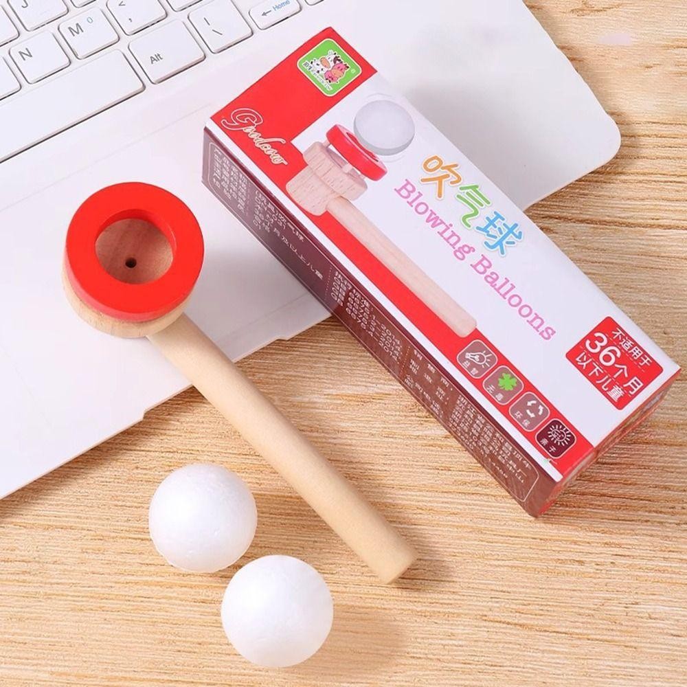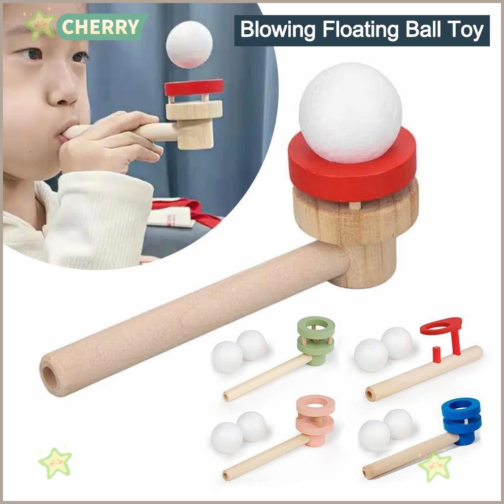 CHERRY Blowing Floating Ball Toy, Wooden Educational Hanging Ball Blower, Fashion Intellectual Toy Floating Blow Pipe Balls for Lung Capacity Training