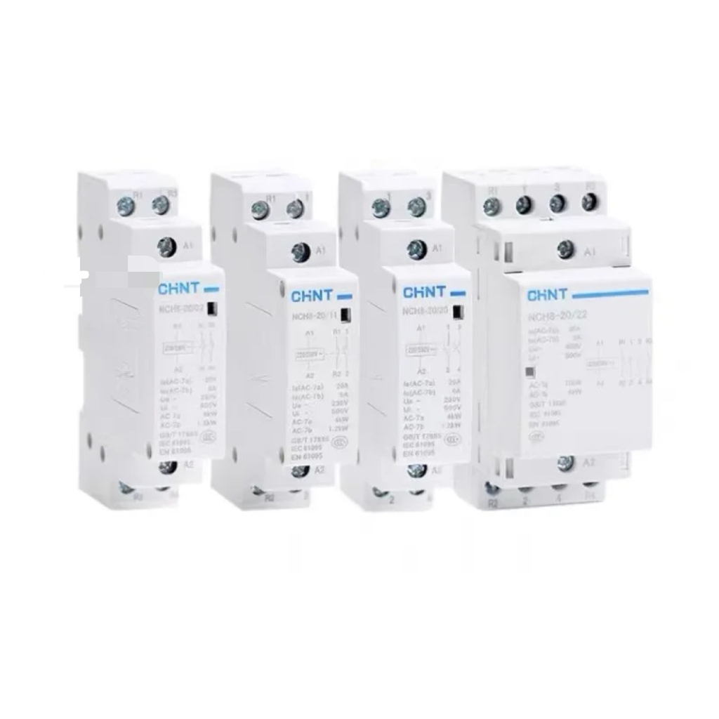 CHINT NCH8 20A 25A 40A 63A Din Rail Household AC Contactor 220V 230V 380V 400V 1NO1NC 2NO 2NC 4NO 1 Single 3 Three Phase