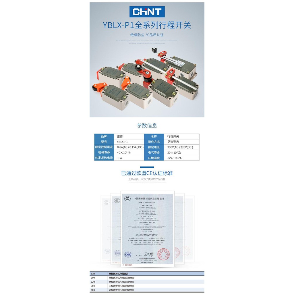 CHNT CHINT limit switch LXP1-120 YBLX-P1/120/1E 1P 1B 1C 1D 1F 1G 1U 1T Chint Micro Switch Automatic Reset Travel Switch