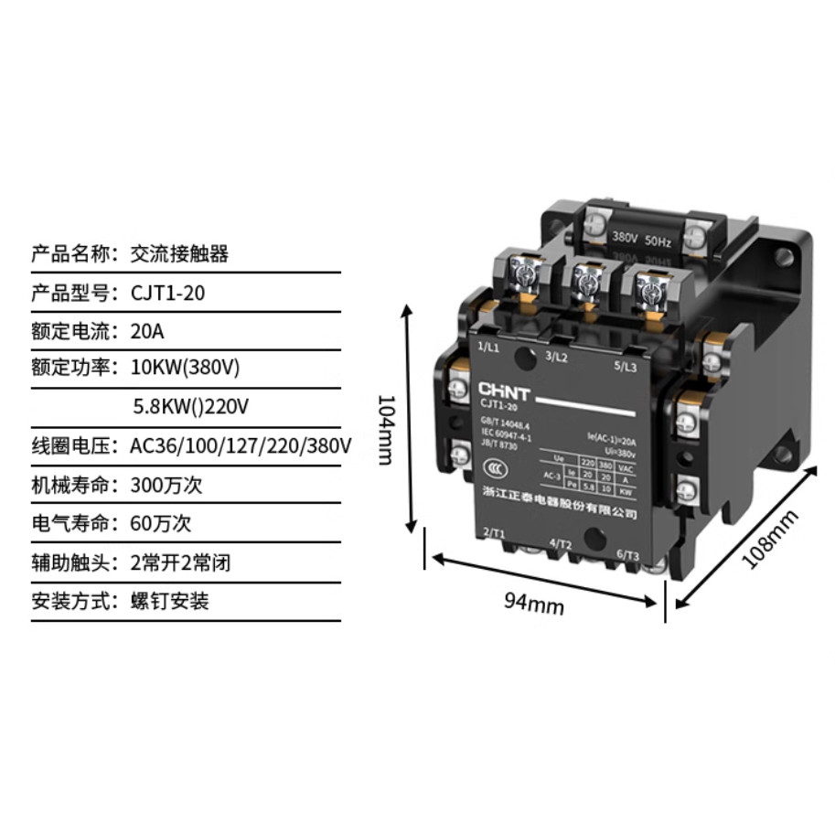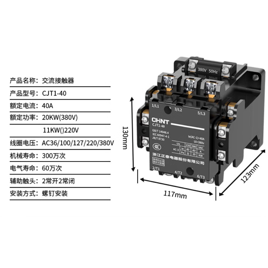 CHNT CJT1-10 CJT1-20 CJT1-40 Ac Contactor 220V Single Fiberglass 20A 40A 60A Three-Phase AC220v AC380v AC110v AC36v AC127V three-phase contactor
