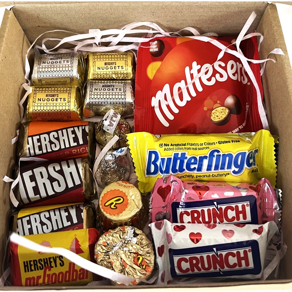CHOCOLATE ASSORTED SMALL GIFT BOX 16 PIECES- MALTESERS BUTTERFINGER CRUNCH HERSHEY'S REESE'S KISSES