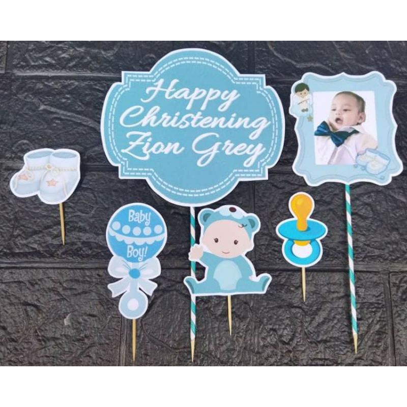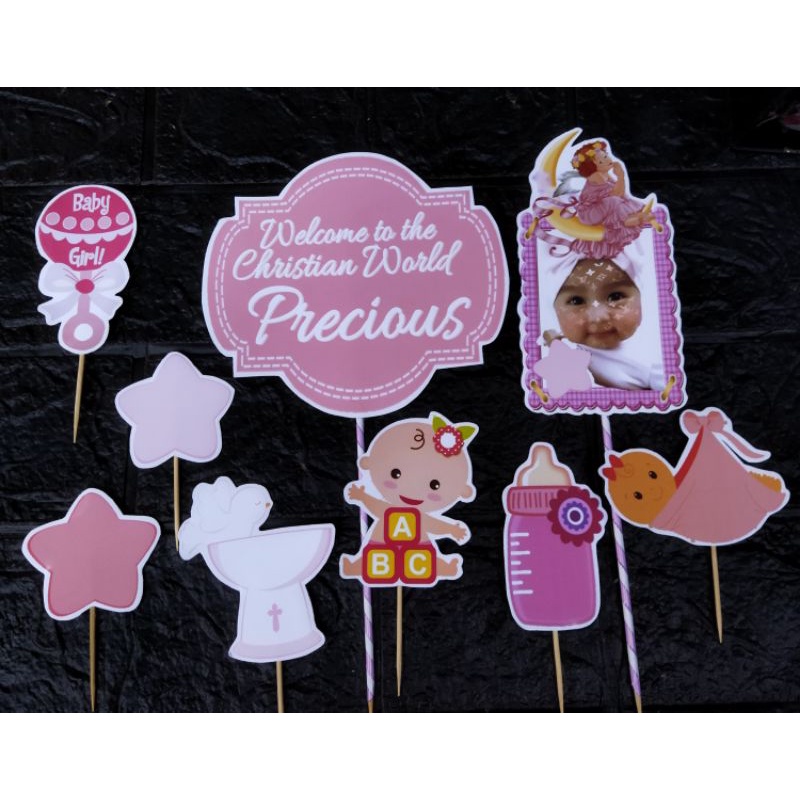 CHRISTENING BAPTISMAL BIRTHDAY DEDICATION PERSONALIZED CAKE TOPPER SET