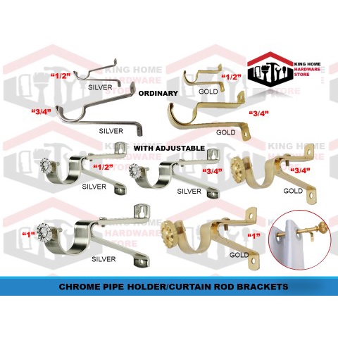 CHROME PIPE HOLDER/ CURTAIN ROD BRACKETS (SILVER/GOLD) (ORDINARY & ADJUSTABLE)