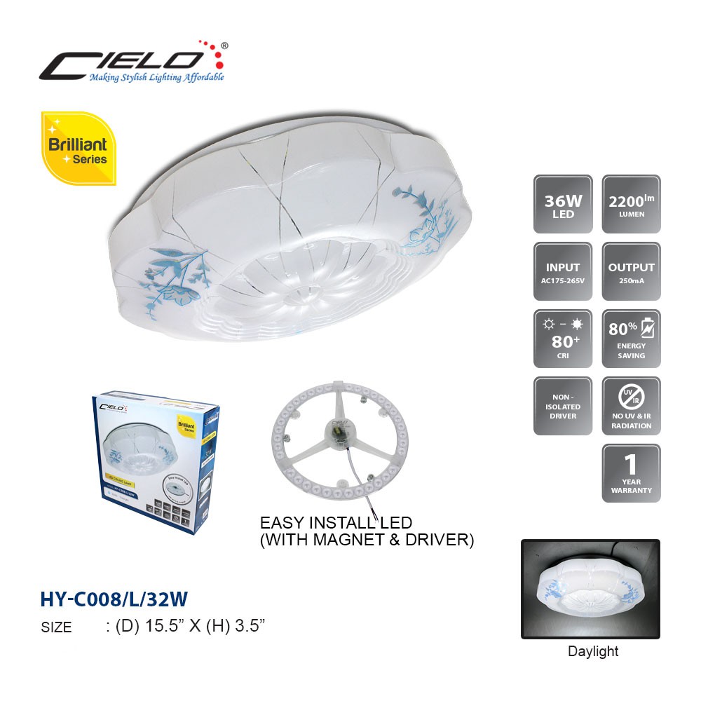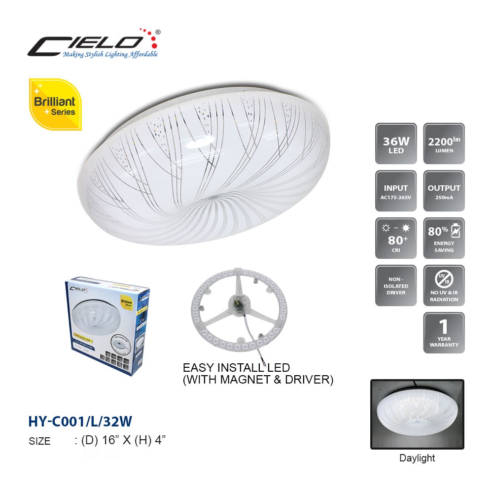 CIELO 32W SURFACE MOUNTED LED CEILING LIGHT DAYLIGHT