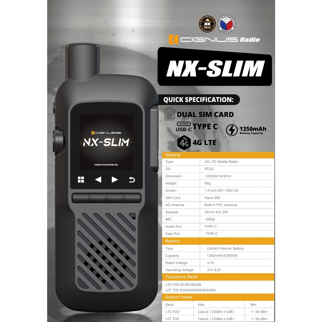 CIGNUS NXSLIM POC RADIO DUAL SIM AND TYPE C CHRAGER
