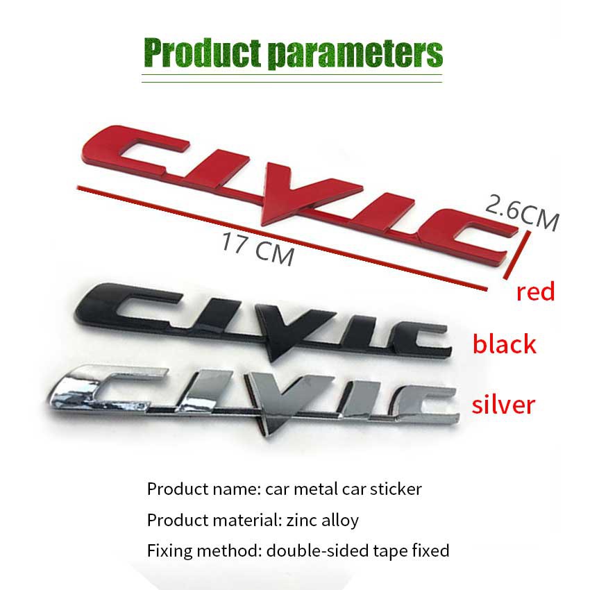 CIVIC Sticker Car 3D Metal Emblem Badge Sticker for Honda Civic Car Rear Tail Trunk Letter Decor